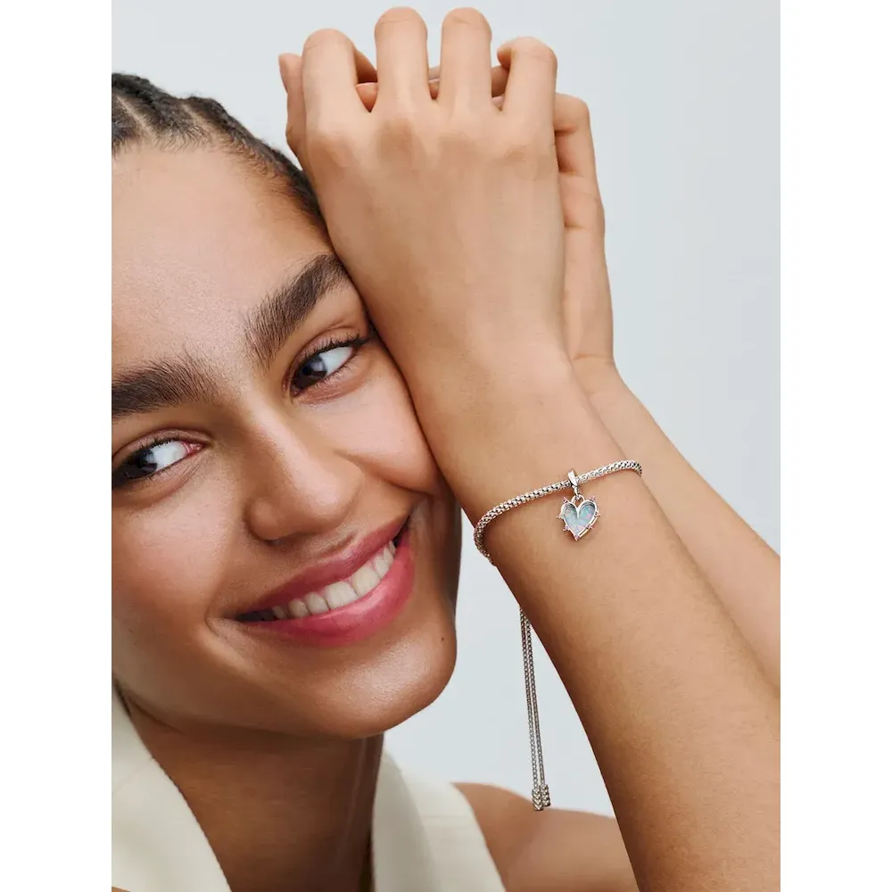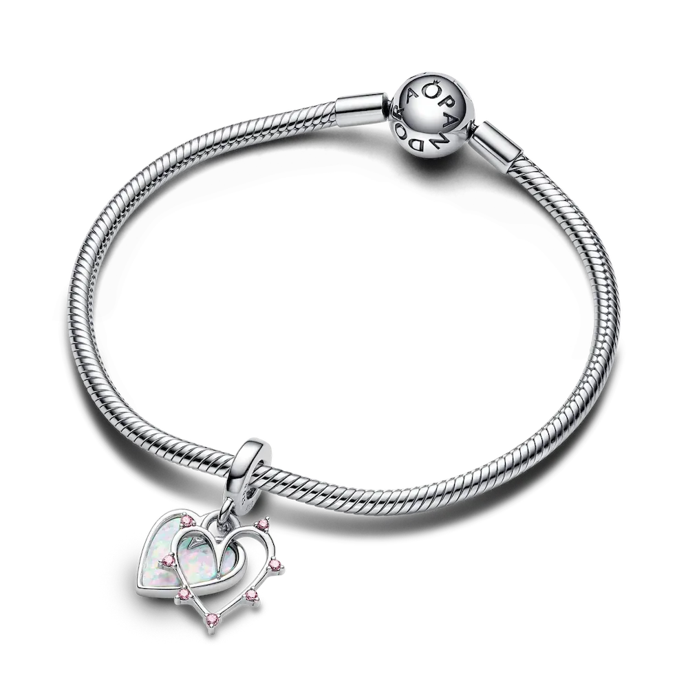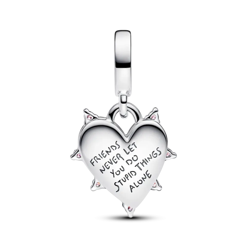 Celebrate your forever friends with our sterling silver double dangle charm, featuring sparkling stones and a pink lab-created opal.