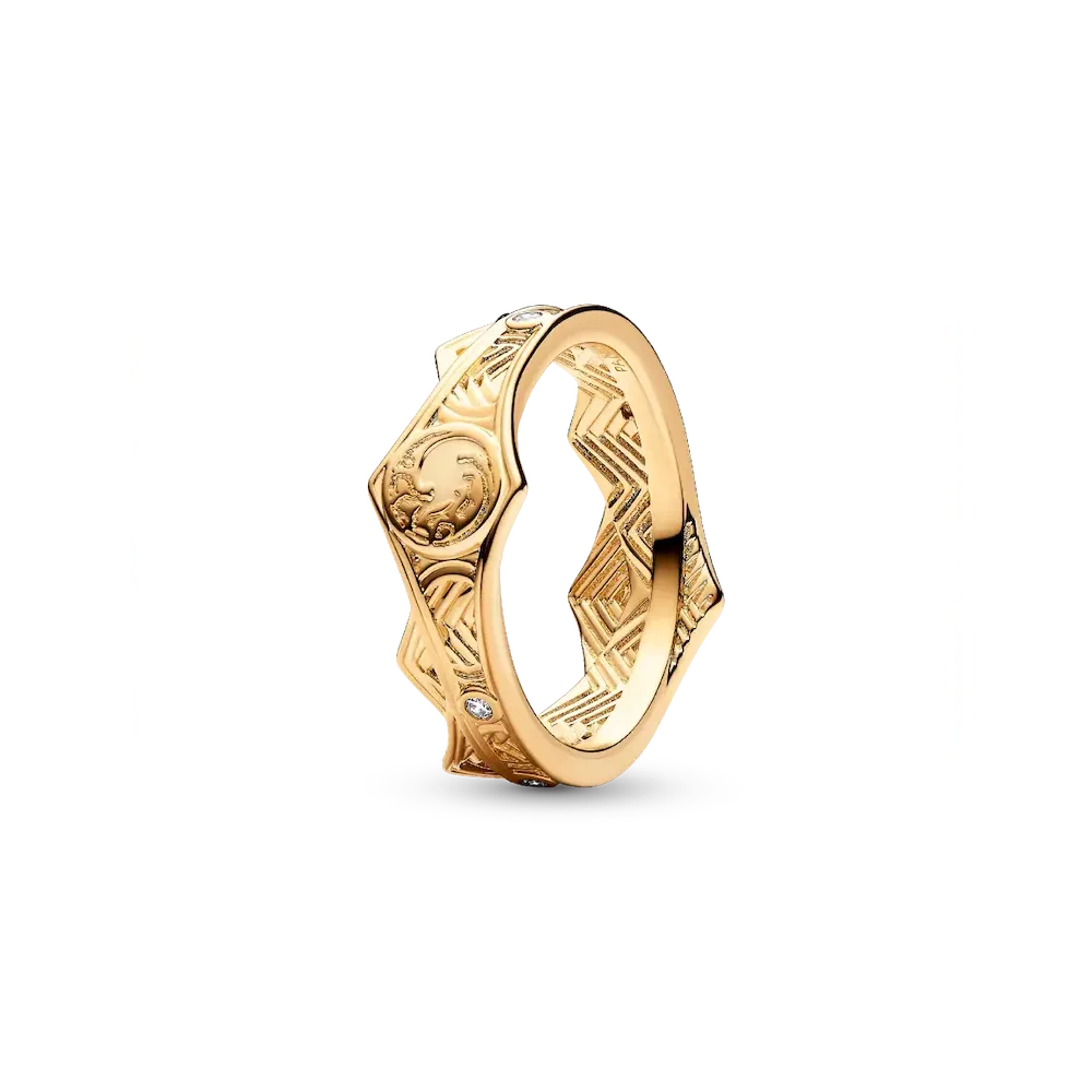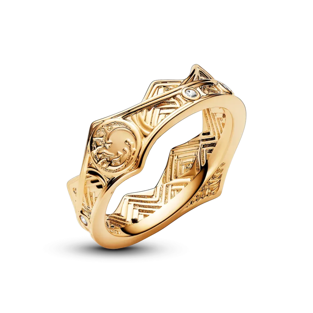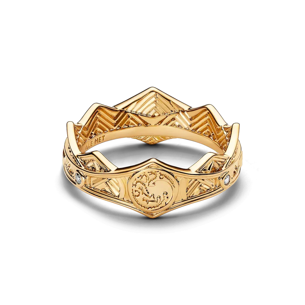 Unleash the power of Westeros with the Game of Thrones Ring Set. The Dragon Sparkling Ring brings the might of the dragon to your style, featuring a sterling silver shank shaped like a dragon with crystal eyes and a tail adorned with red lab-created crystals. The House of the Dragon Crown Ring honors the Targaryen legacy with its 14k gold-plated design, sparkling stones, and arch detailing, crowned by the iconic three-headed dragon sigil. Wear these rings together to show your allegiance to the Targaryens and add royal flair to any look.