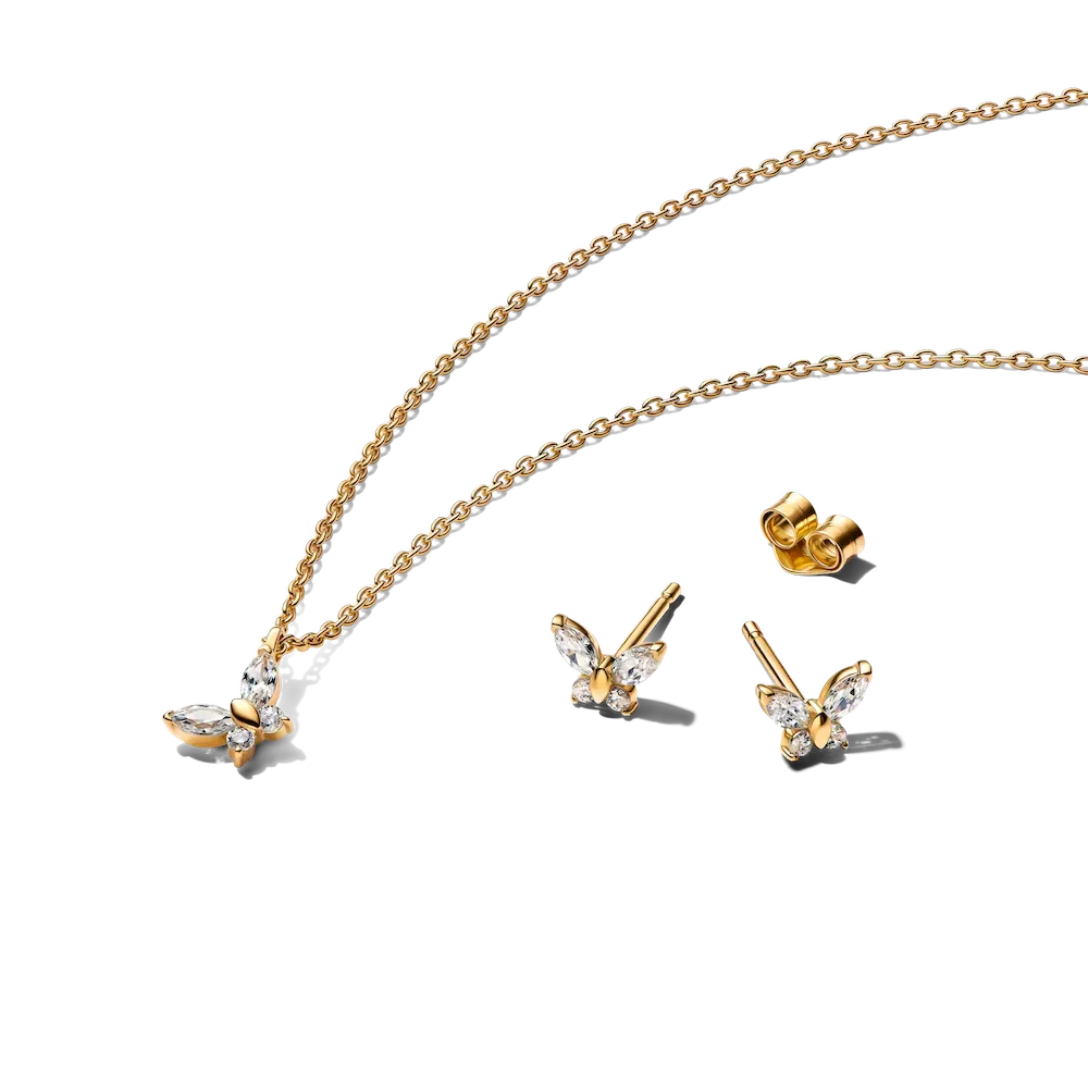 Gold-plated Sparkling Clear Butterfly Necklace and Earring Set