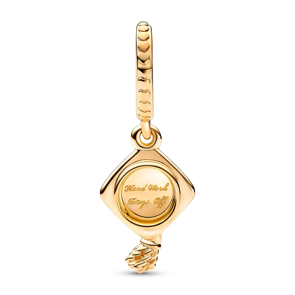 Celebrate their hard work and dedication with the Graduation Cap Dangle Charm. This 14k gold-plated dangle charm features a graduation cap with a realistic grooved tassel detail and the message