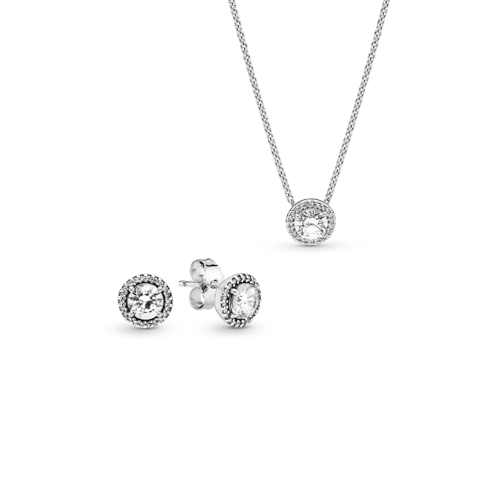 Chic and sophisticated, this sparkling Pandora necklace and Earrings Gift Set is inspired by the glamour of bygone eras. Effortlessly elegant and pairs beautifully with day and evening ensembles.