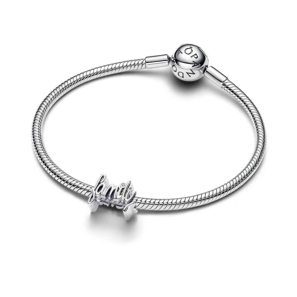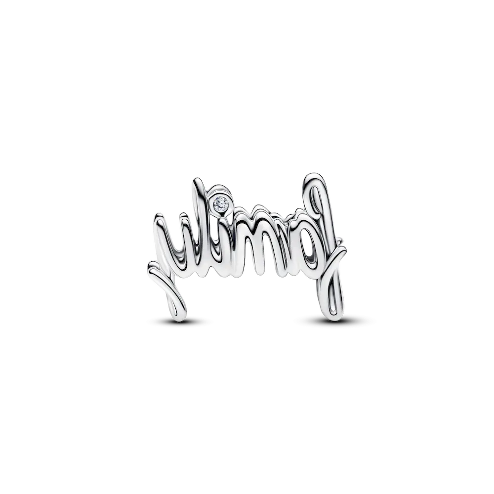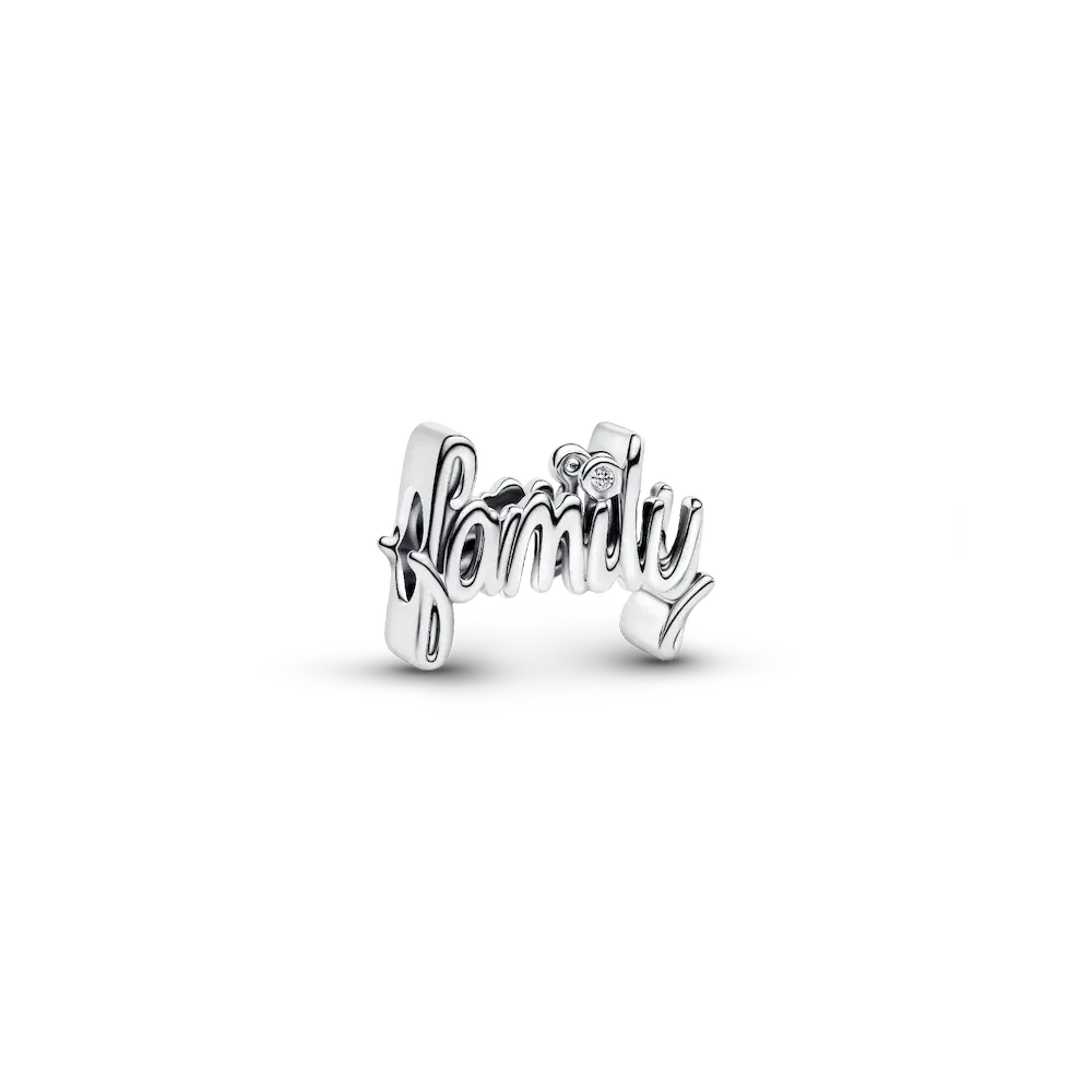 A shining reminder of what matters most. This sterling silver charm features a handwritten ‘family’ script with a cubic zirconia dot over the ‘i’. Expertly crafted, it’s a timeless tribute to the heart of every story.
