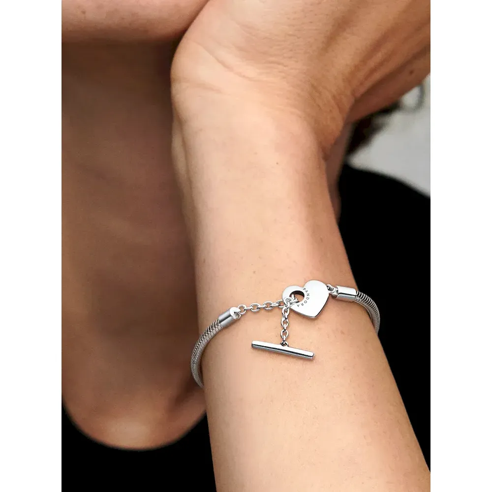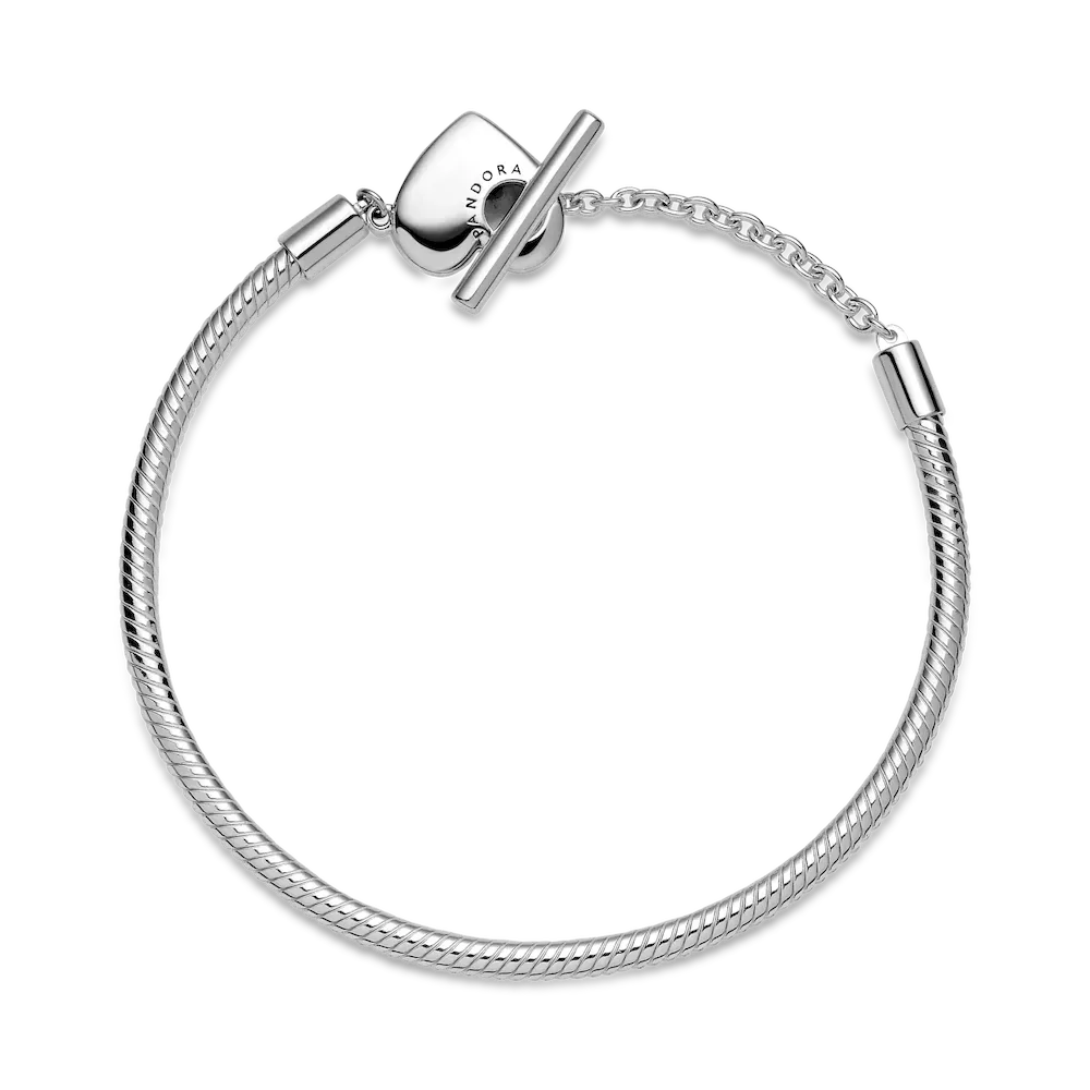 Let their spirit soar with this Happy Birthday Hot Air Balloon Heart T-Bar Set. Hand-finished in sterling silver, the heart-shaped balloon is lovingly coated in transparent purple, pink and blue enamel with creases to add a touch of realism. A small 3D gift box dangles from the balloon with ribbon detailing. The Happy Birthday Hot Air Balloon Charm comes on a Pandora Moments Heart T-Bar Snake Chain Bracelet featuring a heart-shaped disc with an open circle on one side to loop the T-bar through to open and close. The perfect gift for adventure seekers.