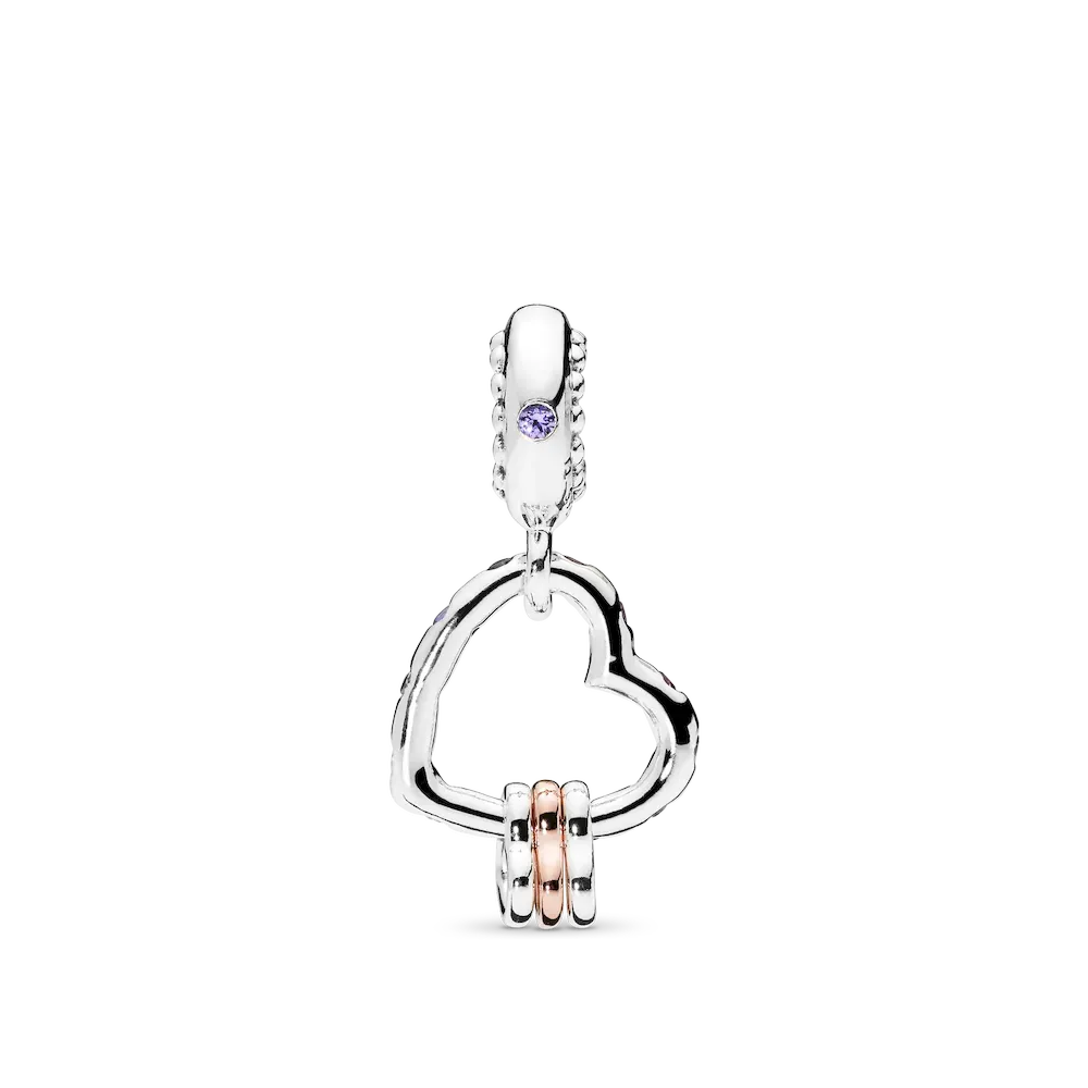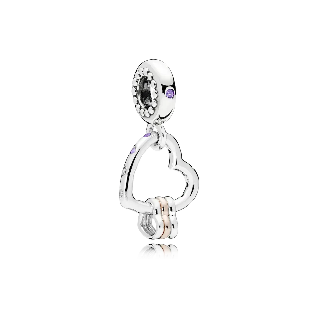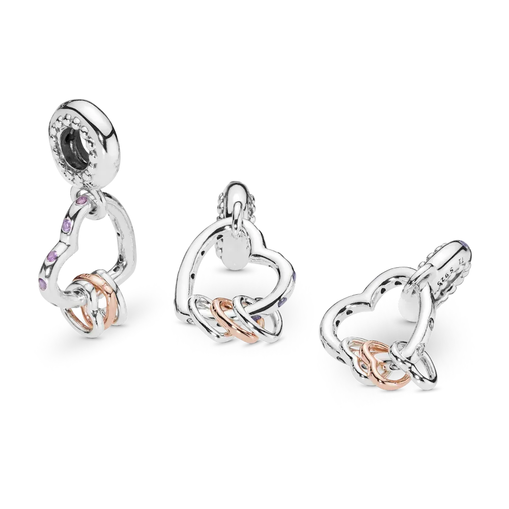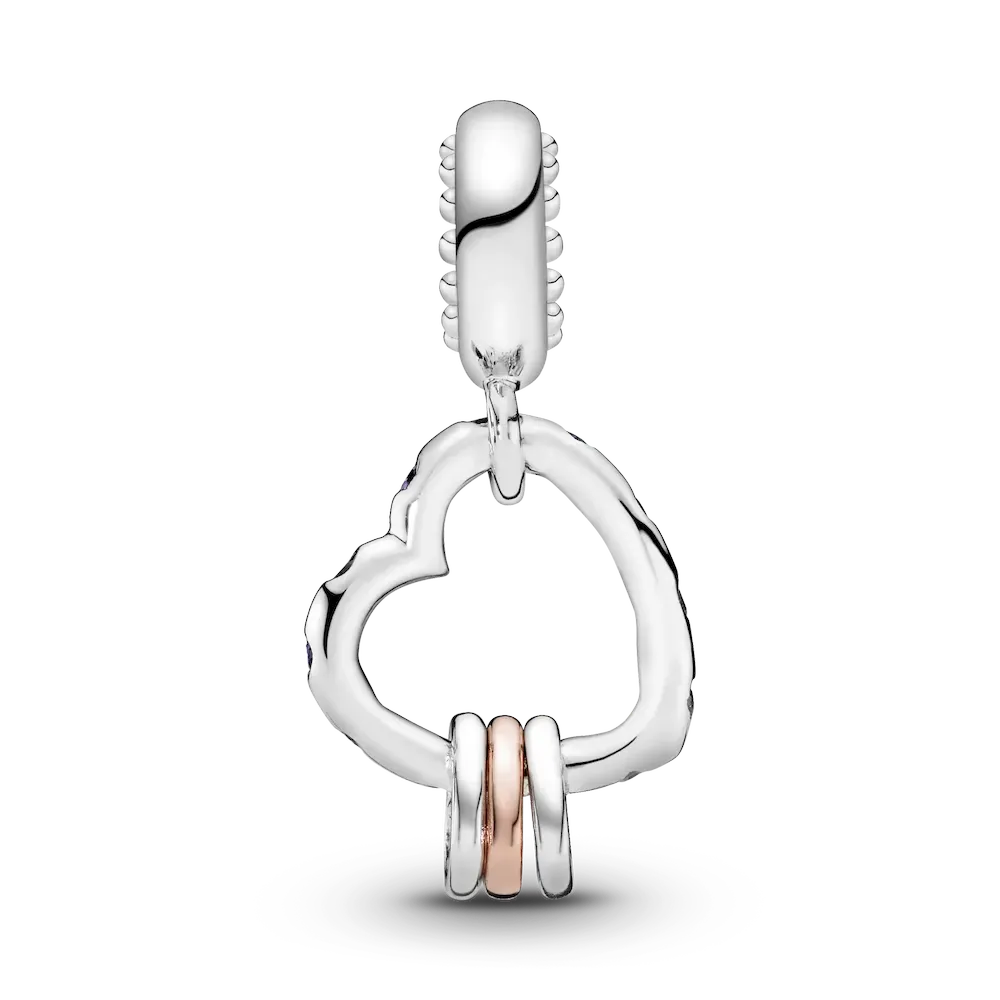 Hearts can hold so much love. Show the things that mean the most to you on your Pandora Moments bracelet with the Heart Full of Hearts Dangle Charm. Shaped from sterling silver, this charm holds miniature hearts, one of which is plated with 14k rose gold. The large heart and bail are detailed with crystals and cubic zirconia for subtle sparkle.