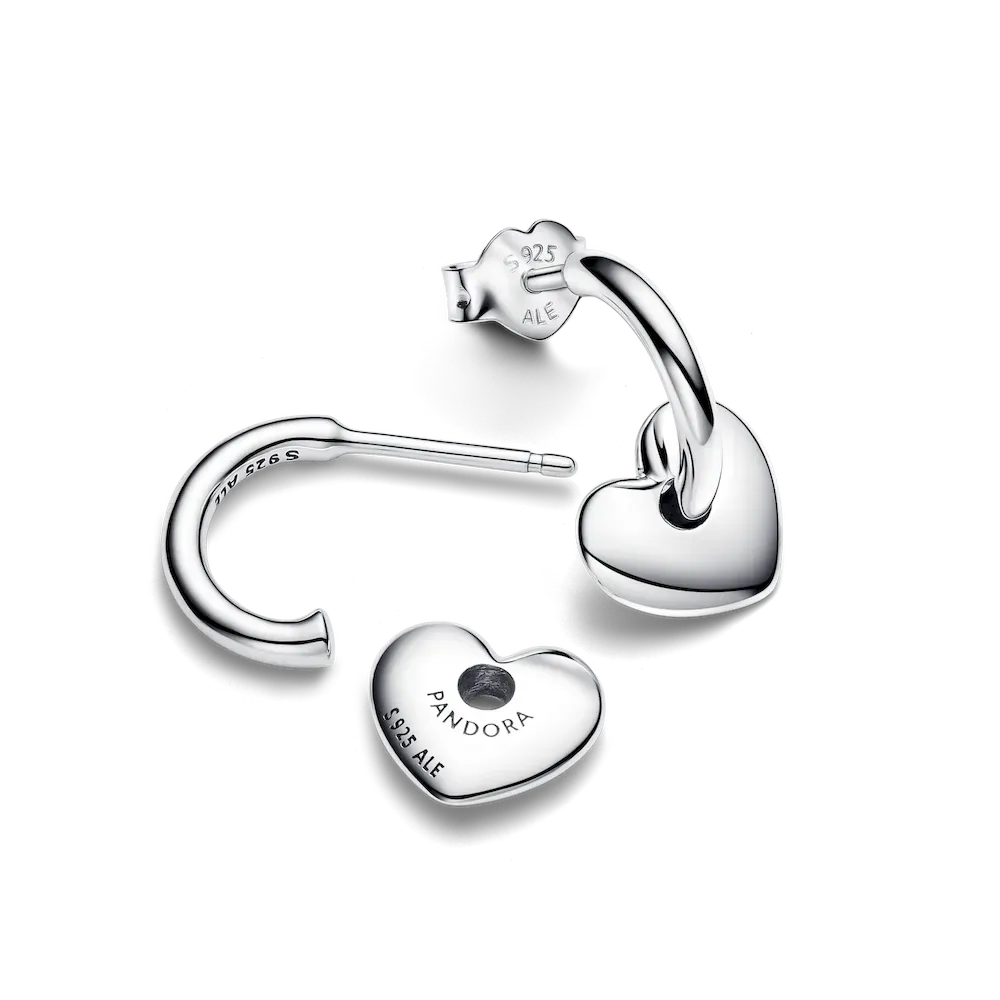These earrings are a reminder to face the world with love. The sterling silver hoops feature a moveable heart dangle that faces forward, making a bold statement. Style yours with more heart-shaped hoops from Pandora Moments, to double up on love, or wear them as part of a personalized stack of your own.