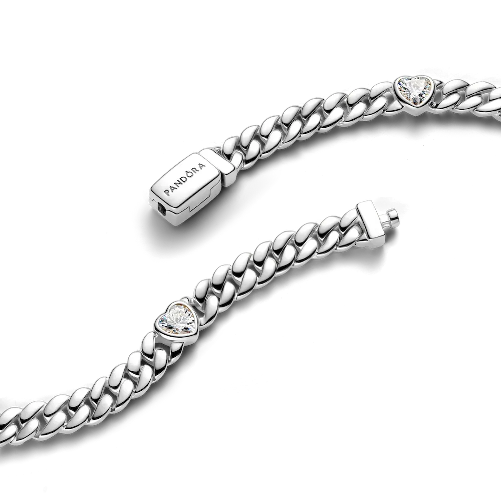 One for you, one for them. This set features two of our bestselling sterling silver Cuban chain bracelets. One is set with heart-shaped stones and the other is crafted with oval links and sparkling pavé.