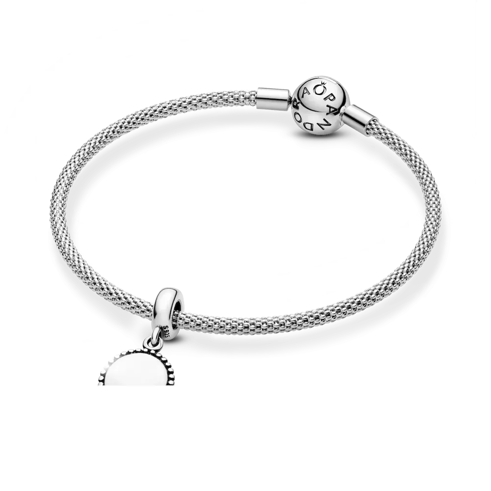An elegant way to wear the logo trend, it’s stamped with our brand name and crown O monogram making it the perfect piece for Pandora lovers. You can also try wearing it as a necklace pendant, displaying the front or back to suit your mood.