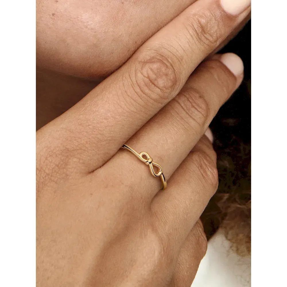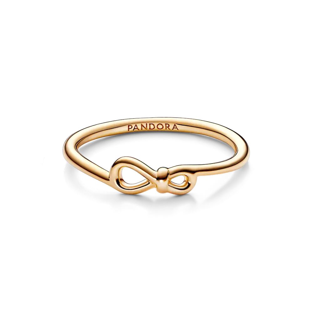 Our Infinity Knot Ring is the perfect representation of an unbreakable bond and a stylish addition to your collection. Pandora’s unique interpretation of the infinity symbol, the knot wraps around an asymmetrically set center to signify the strength of the connection. When forever isn’t enough, try wearing this 14k gold-plated ring with other infinity-inspired pieces to amplify the message and create a statement jewelry look.