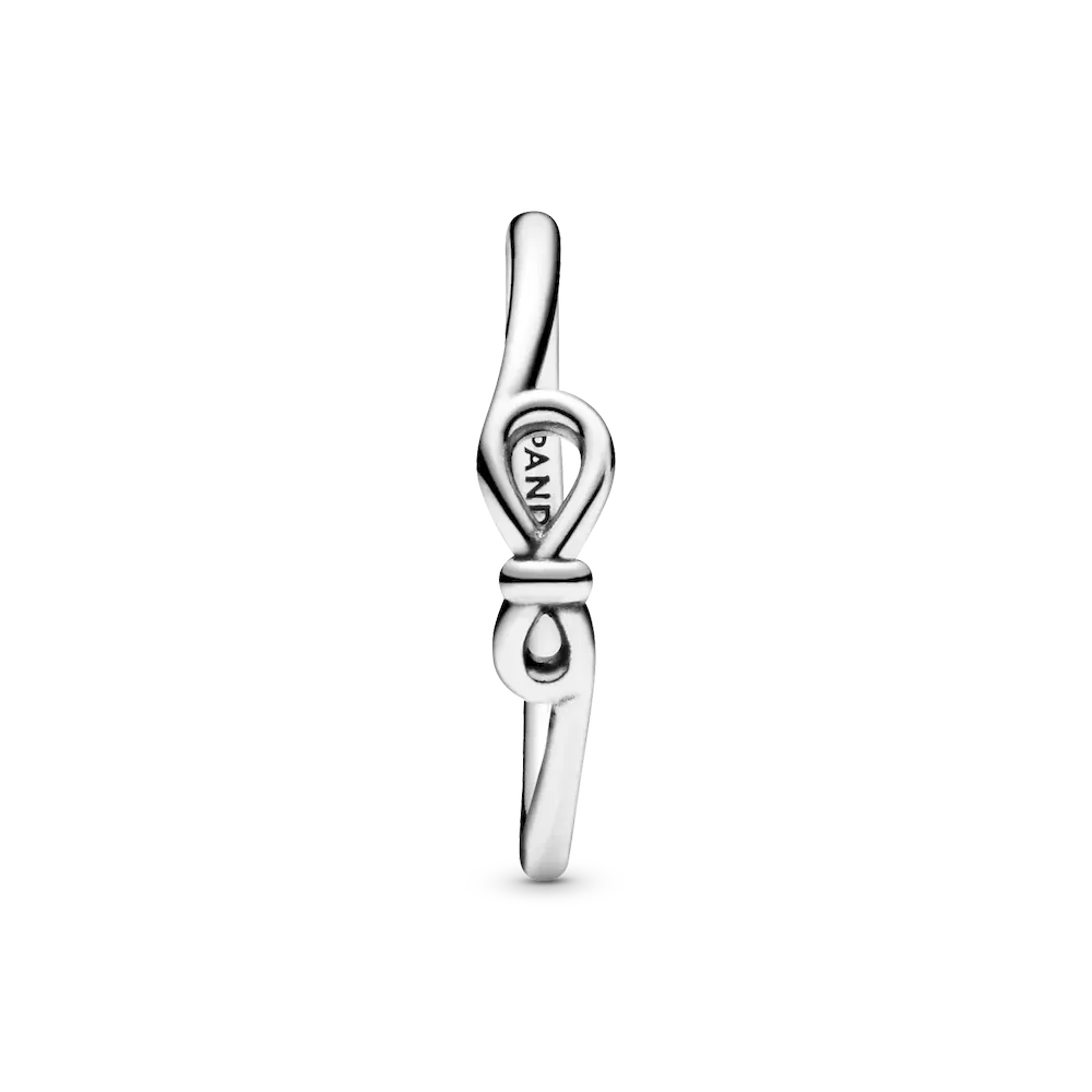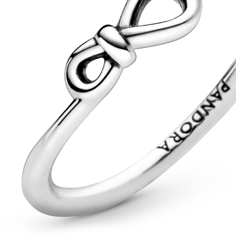 It’s double the love with Pandora’s unique interpretation of the infinity symbol. The iconic knot wraps around the asymmetrically-set center to signify the strength of the connection. This thin sterling silver infinity ring is the perfect representation of an unbreakable bond and a stylish addition to your ring collection. When infinity isn’t enough, try styling this ring with other infinity-inspired pieces to amplify the message and create a statement look.