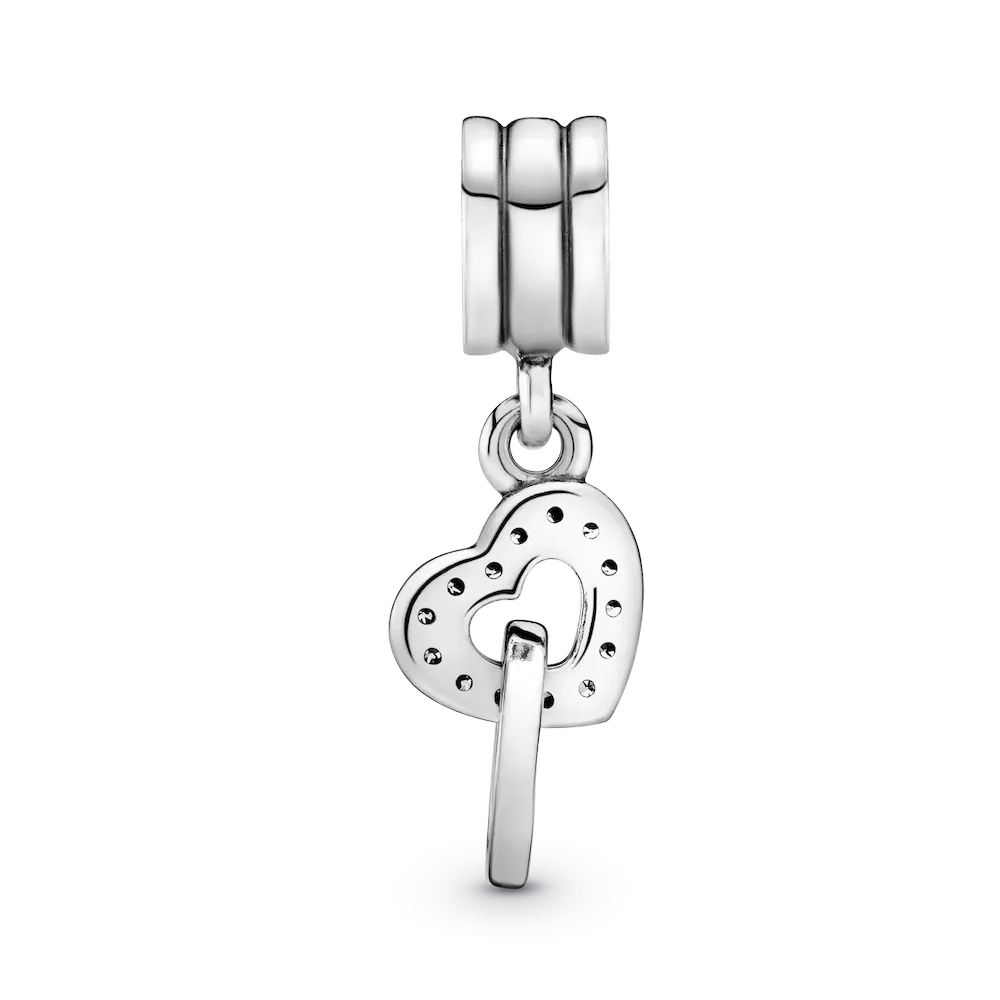 Wear a symbol of your unbreakable bond with this sterling silver dangle charm. Set with cubic zirconia for a sparkling finish, it’s shaped as two interlocking hearts. It adds subtle movement to Pandora Moments charm bracelets as a symbol of a love connection. You can even wear it as a necklace pendant.