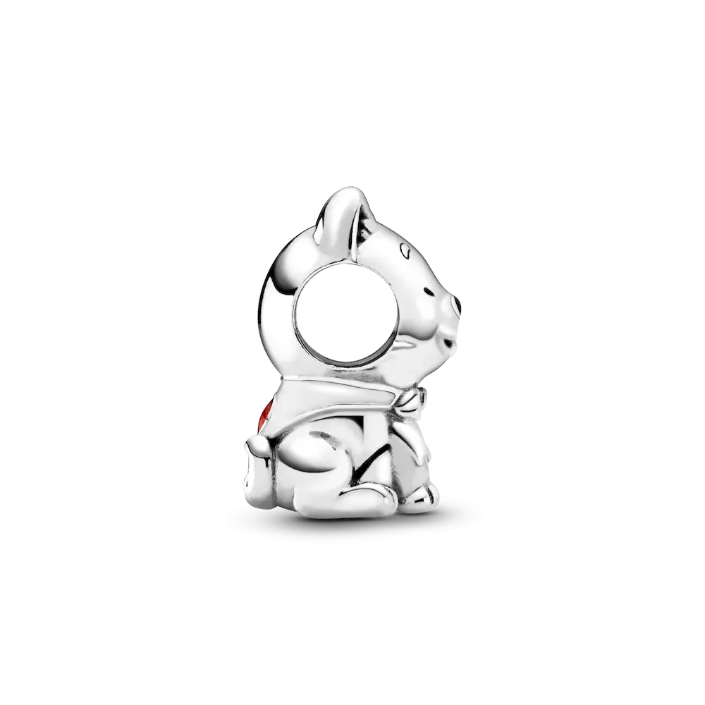 Add a new loyal friend to your collection with the Japanese Akita Inu Dog Charm. The sweet pup is hand-finished in sterling silver and his snout is detailed with hand-applied black enamel. The loyal canine also sports a bandanna around his neck with white and red enamel detail representing the flag of Japan. A national icon in his native country, let the Akita Inu represent what the country of the rising sun means to you.