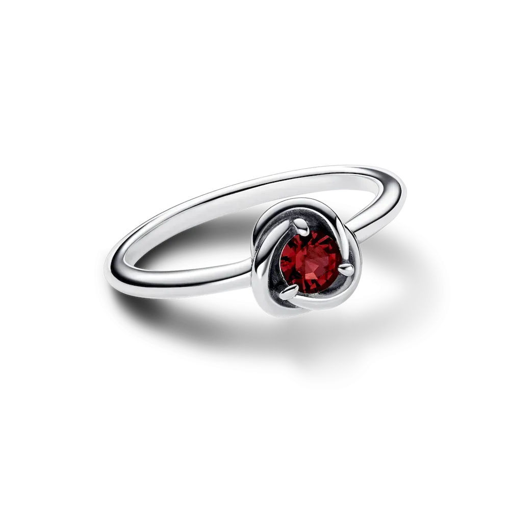Wear a symbol of forever with the True Red Eternity Circle Ring. This sterling silver ring features one claw-set sparkling red man-made crystal. The polished band wraps around the center stone in an openwork braided infinity pattern. Whether you want to carry a reminder of eternal love or a symbol of the timeless joy that infuses each and every moment, this colorful eternity ring will bring sparkling meaning to your look.