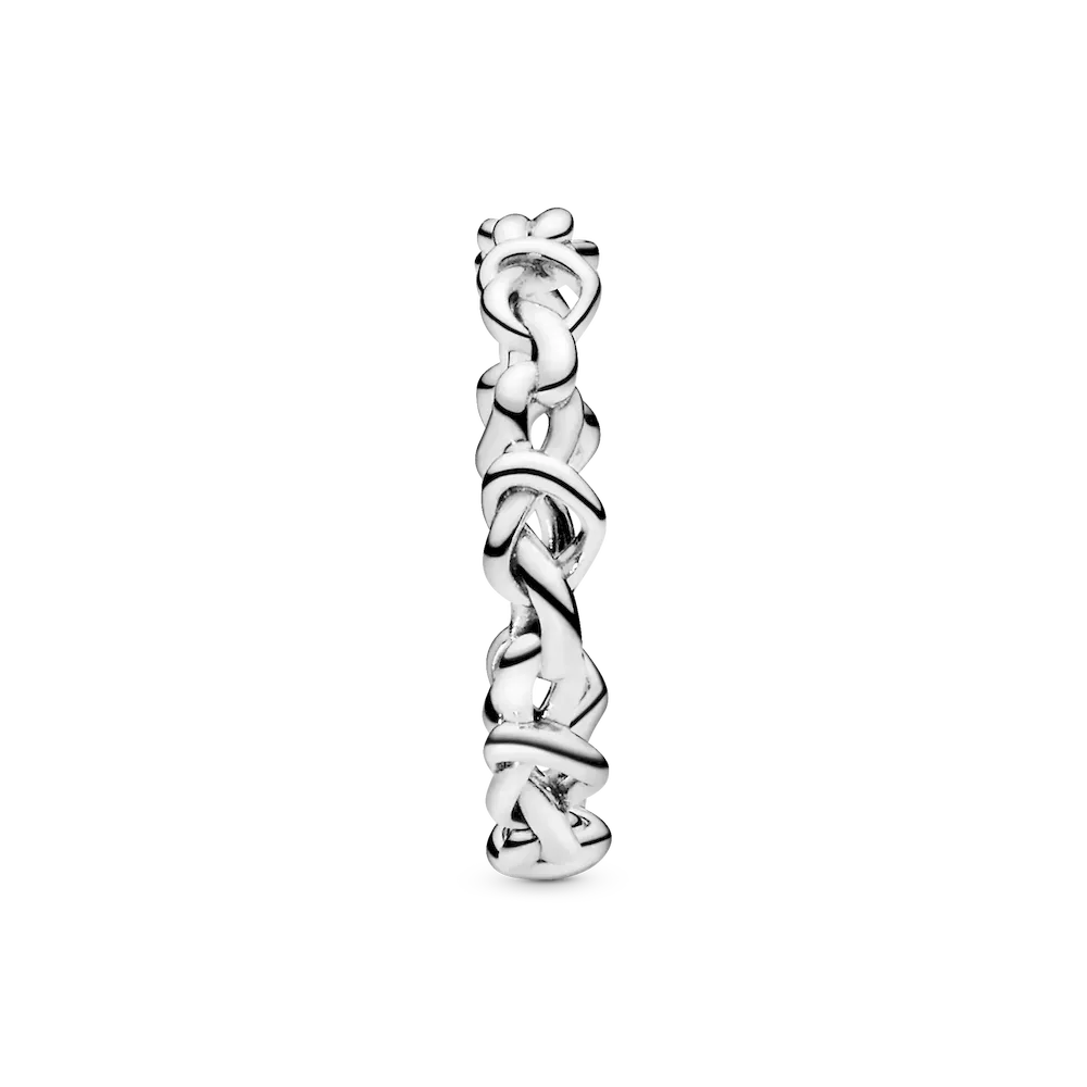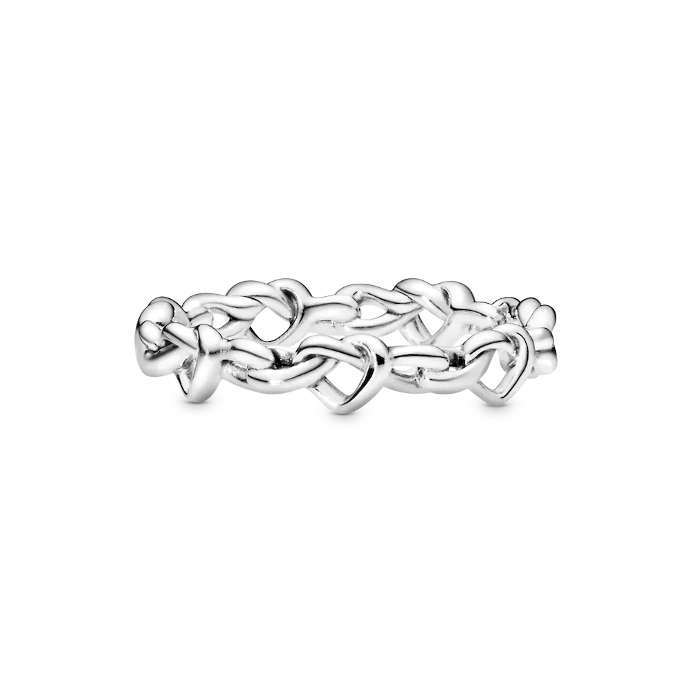 Knotted hearts are a symbol of an unbreakable bond and you can display yours with this band ring in sterling silver. The ring is shaped with interlinked hearts that give it a textured feel, perfect for adding dimension to any curated ring stack. Ideal for wearing or gifting, the timeless ring puts a personal spin on ring stacks and looks equally good worn alone.