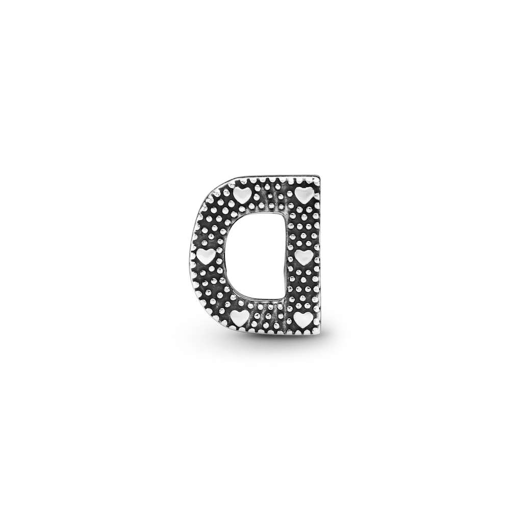 Tell your style story through our letter charms that let you spell out the words that mean the most to you. Monogram your Pandora Moments charm bracelet with important initials or create a personal message with the letter D. The reversible sterling silver charm is polished on the front and feature raised hearts and beads on the back. Add the letter D to your charm collection or gift it to someone that’s got a special connection to the letter.