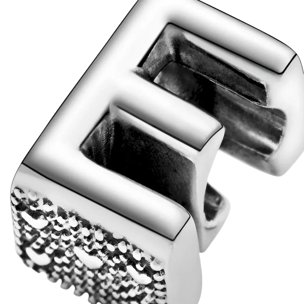 Tell your style story through our letter charms that let you spell out the words that mean the most to you. Monogram your Pandora Moments charm bracelet with important initials or create a personal message with the letter E. The reversible sterling silver charm is polished on the front and feature raised hearts and beads on the back. Add the letter E to your charm collection or gift it to someone that’s got a special connection to the letter.