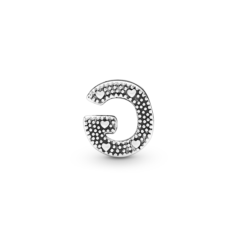 Tell your style story through our letter charms that let you spell out the words that mean the most to you. Monogram your Pandora Moments charm bracelet with important initials or create a personal message with the letter G. The reversible sterling silver charm is polished on the front and feature raised hearts and beads on the back. Add the letter G to your charm collection or gift it to someone that’s got a special connection to the letter.