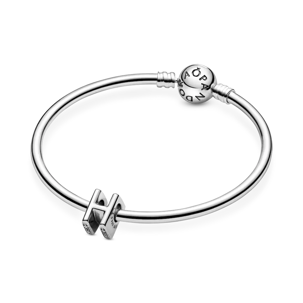 Tell your style story through our letter charms that let you spell out the words that mean the most to you. Monogram your Pandora Moments charm bracelet with important initials or create a personal message with the letter H. The reversible sterling silver charm is polished on the front and feature raised hearts and beads on the back. Add the letter A to your charm collection or gift it to someone that’s got a special connection to the letter.