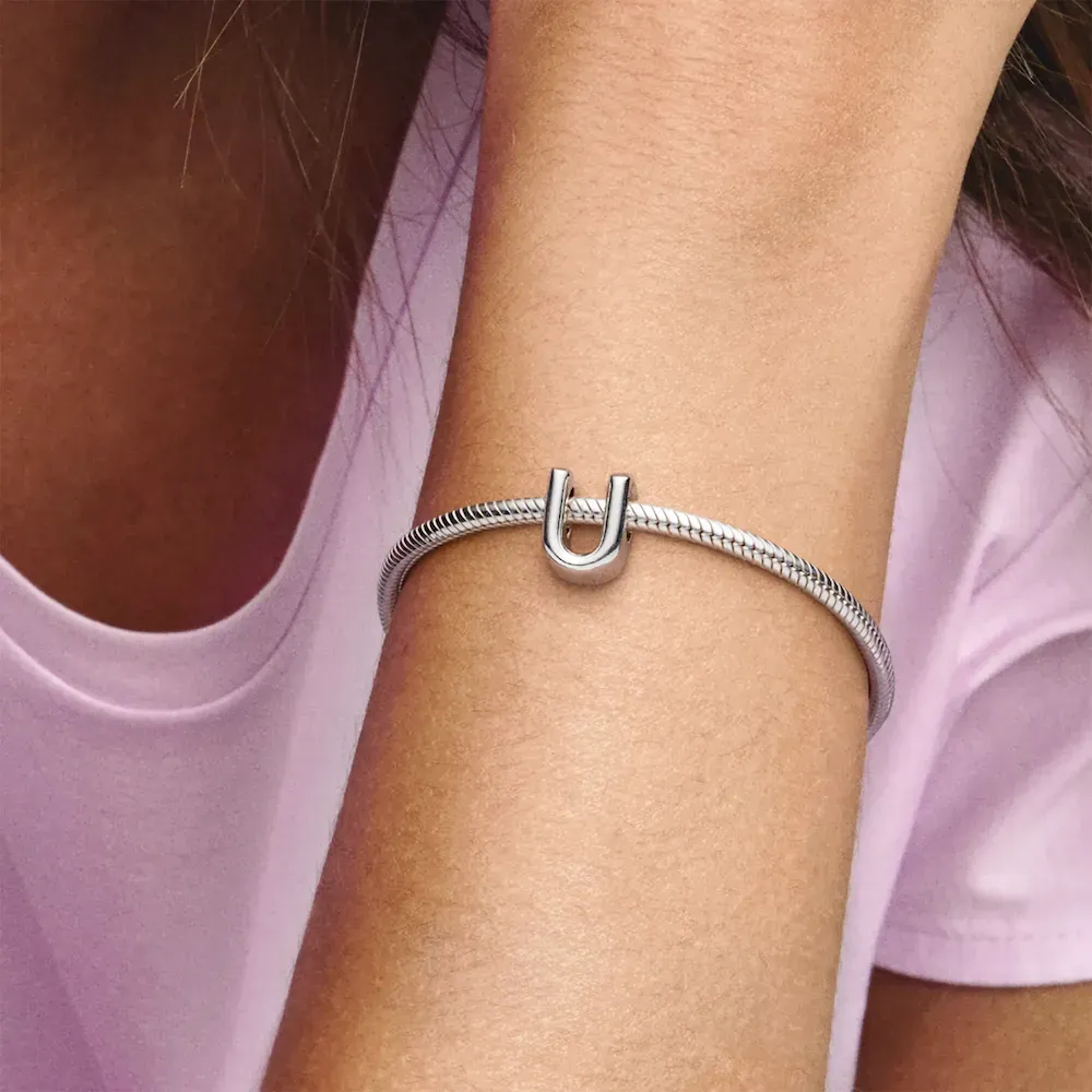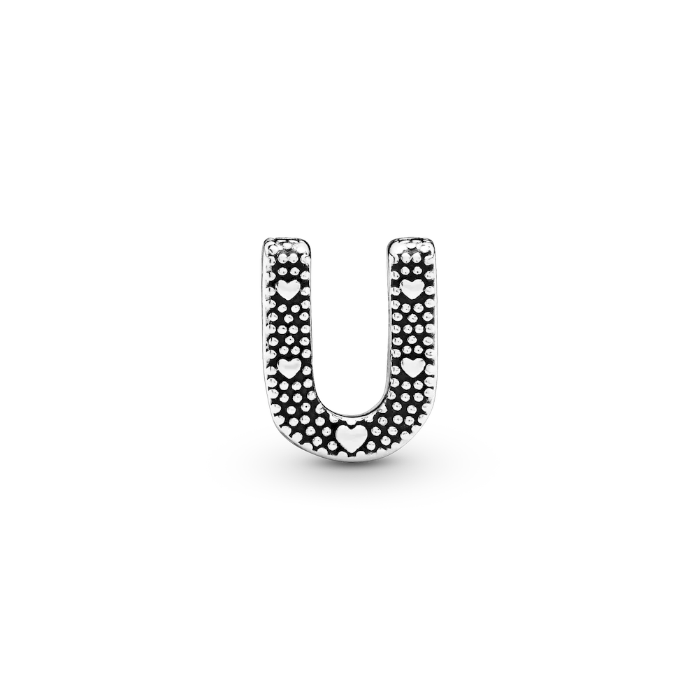 Tell your style story through our letter charms that let you spell out the words that mean the most to you. Monogram your Pandora Moments charm bracelet with important initials or create a personal message with the letter U. The reversible sterling silver charm is polished on the front and feature raised hearts and beads on the back. Add the letter U to your charm collection or gift it to someone that’s got a special connection to the letter.
