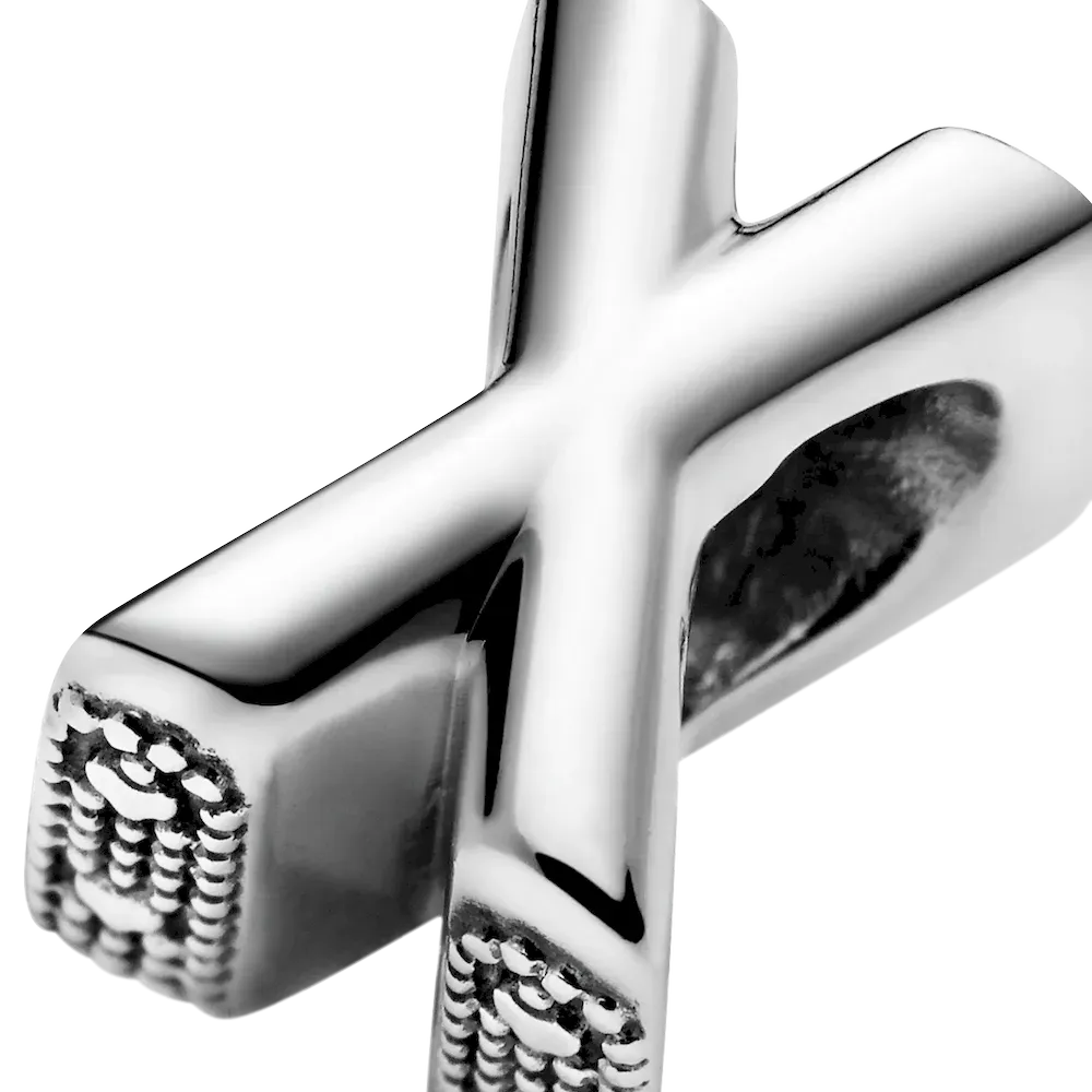 Tell your style story through our letter charms that let you spell out the words that mean the most to you. Monogram your Pandora Moments charm bracelet with important initials or create a personal message with the letter X. The reversible sterling silver charm is polished on the front and feature raised hearts and beads on the back. Add the letter X to your charm collection or gift it to someone that’s got a special connection to the letter.