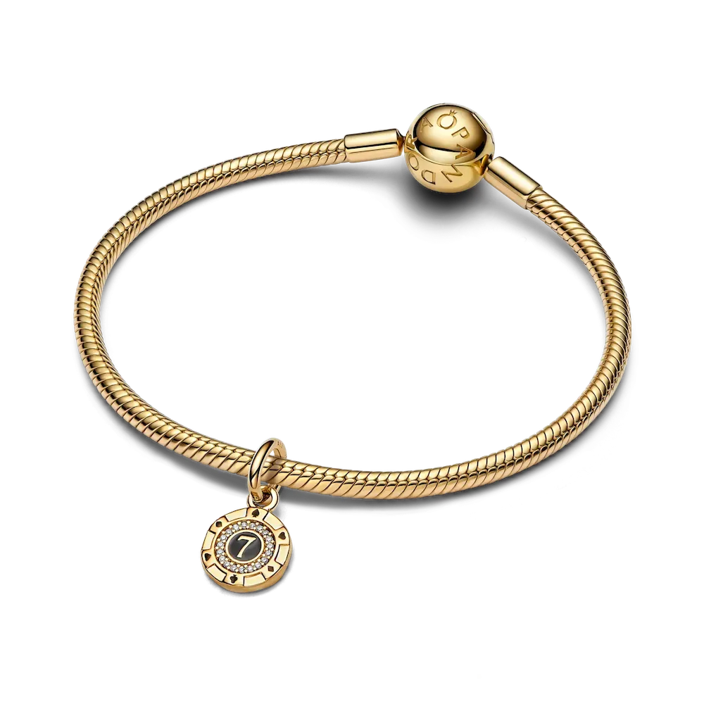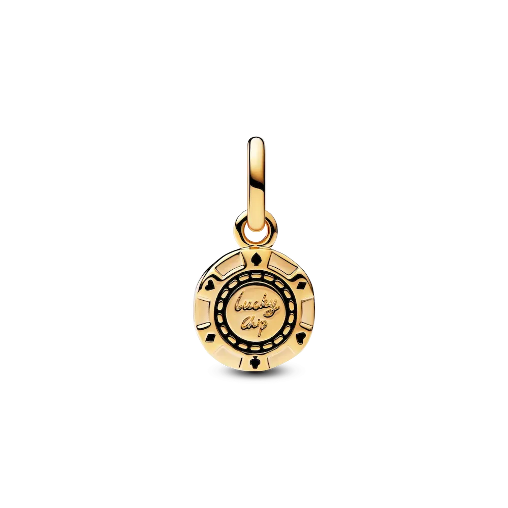 Celebrate the thrill of chance and the allure of possibility with a charm inspired by the iconic token of Vegas, featuring a casino chip design with poker card symbols and a bezel-set clear cubic zirconia stone.