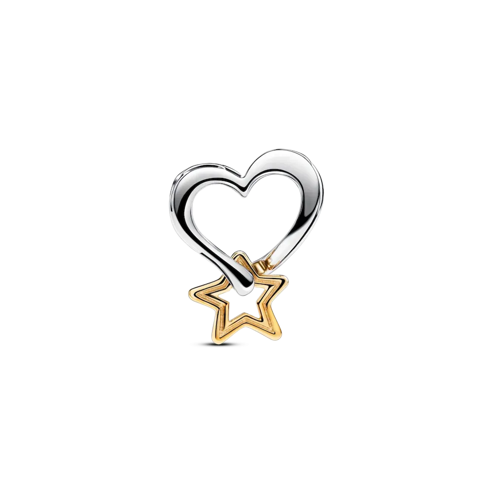 Love and luck unite in our mixed-metal Lucky Star & Heart Charm. A 14k gold-plated star dangles from a sterling silver openwork heart charm, engraved with the message