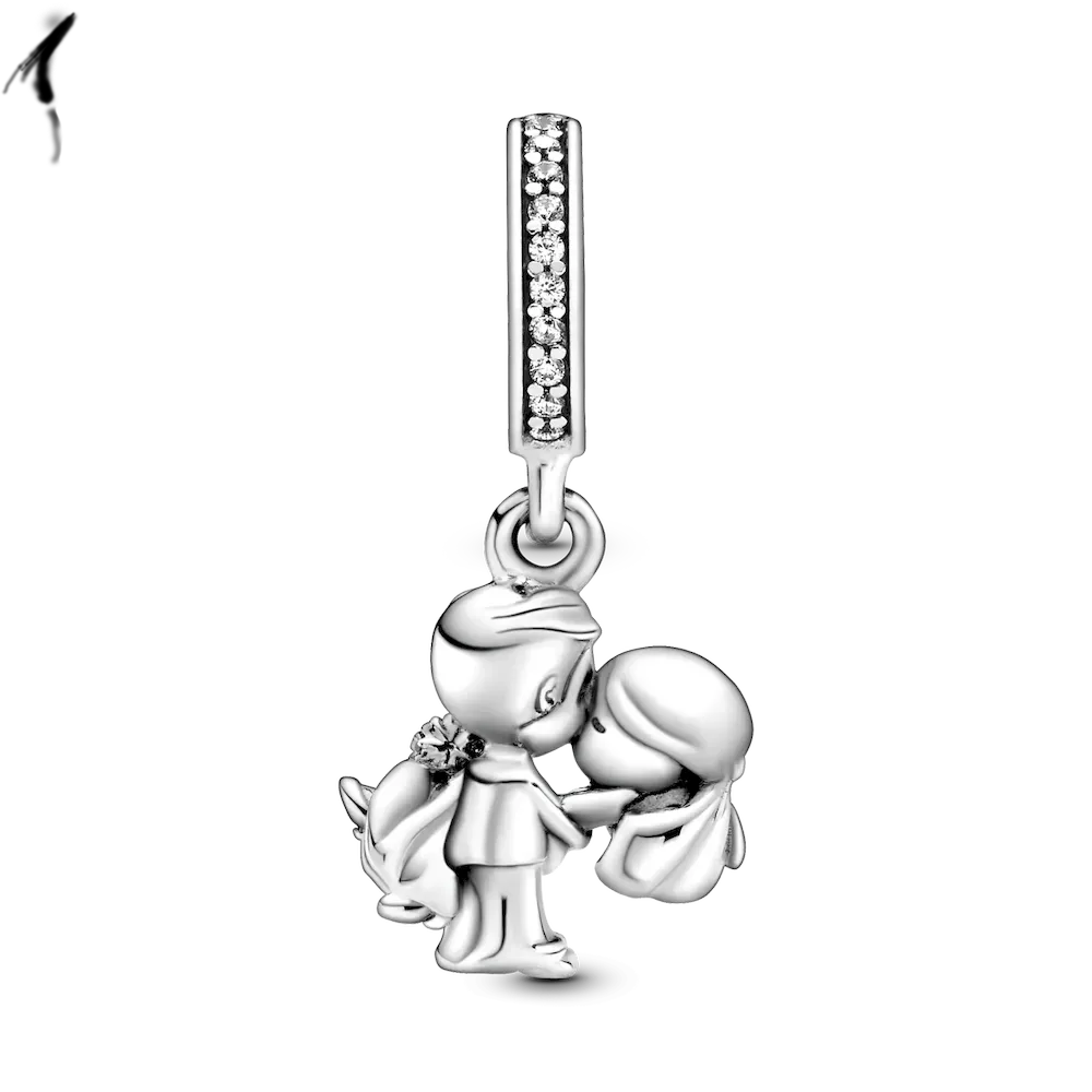 Make the special moment last forever with the sterling silver Married Couple Dangle Charm. Let the romance of saying “I do” live on with this emotional charm featuring a newlywed couple kissing. The groom gently holds his bride as she carries her flowers in her hands and the bail is set with clear cubic zirconia. Make this meaningful piece a part of your collection or gift it to a bride close to your heart.