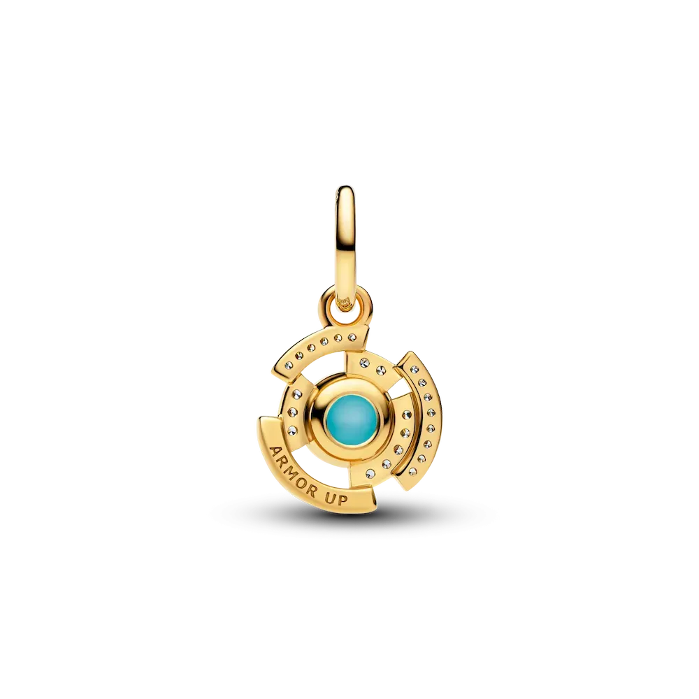 Power up your charm collection with two 14k gold-plated charms inspired by Marvel’s Iron Man. Includes the Marvel Iron Man Helmet Charm and the Marvel Iron Man Arc Reactor Dangle Charm with glow-in-the-dark details.