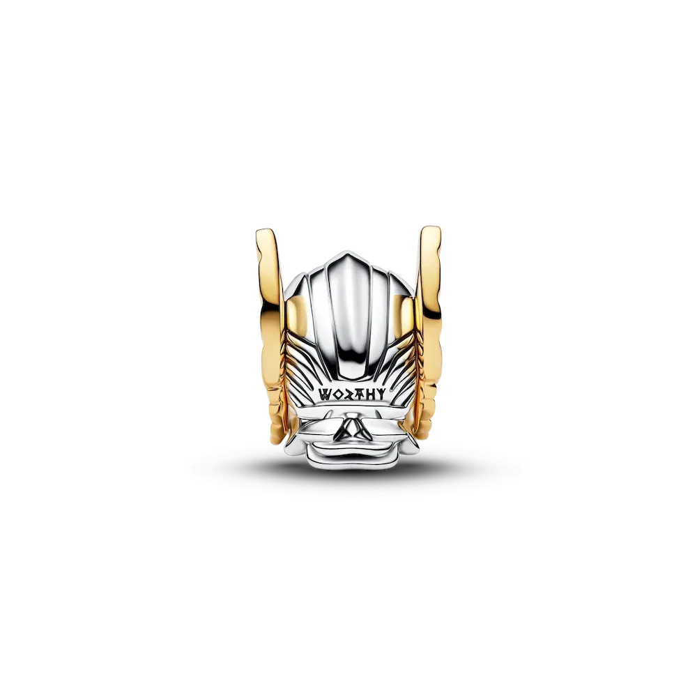 Channel the thunderous strength of Thor. Crafted in sterling silver and 14k gold plating, the helmet charm symbolizes power, honor and responsibility. Wear it as a bold reminder of heroic legacy and unyielding courage.