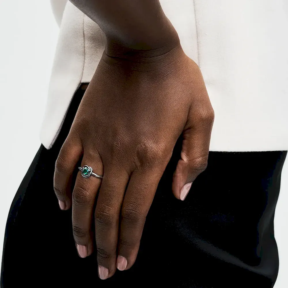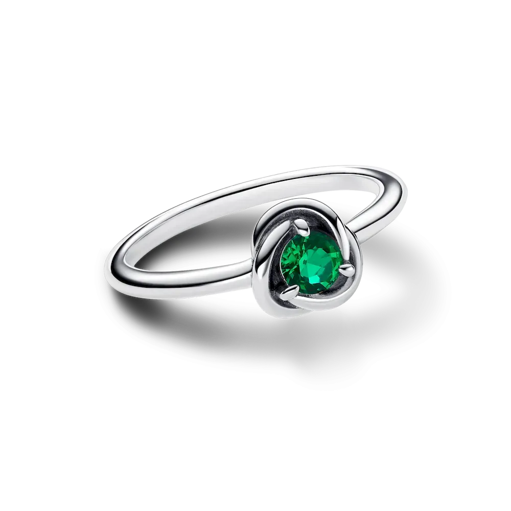 Wear a symbol of forever with the Green Eternity Circle Ring. This sterling silver ring features one claw-set sparkling royal green man-made crystal. The polished band wraps around the center stone in an openwork braided infinity pattern. Whether you want to carry a reminder of eternal love or a symbol of the timeless joy that infuses each and every moment, this colorful eternity ring will bring sparkling meaning to your look.
