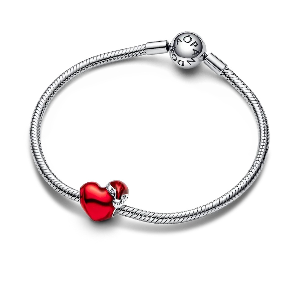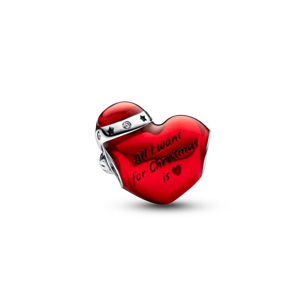 Capture the love in the air these holidays with this sterling silver Christmas heart charm, hand-finished in glossy red transparent enamel with a cute Santa hat detail and an engraving that reads