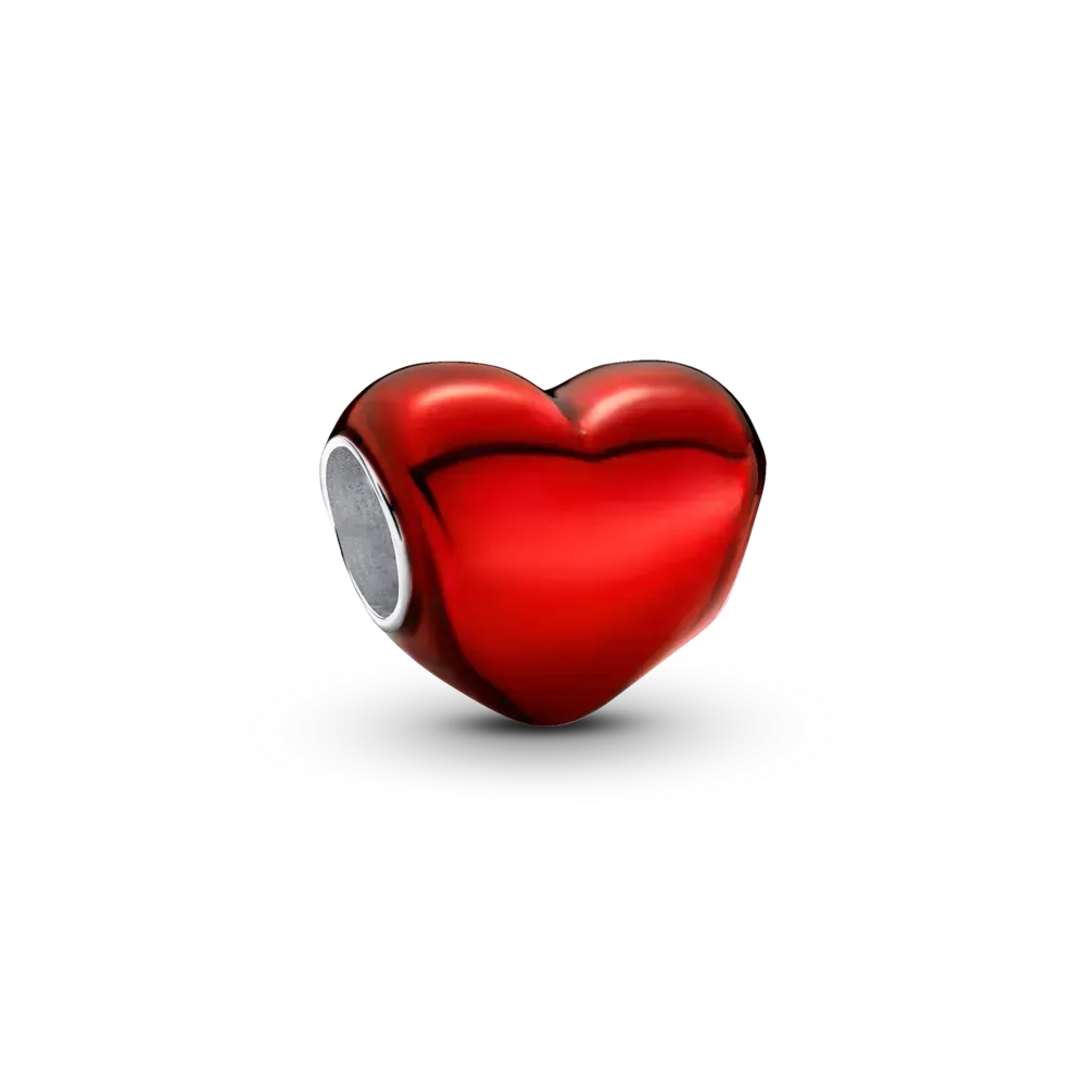 Make your style pop with the Metallic Red Heart Charm. Hand-finished in sterling silver, this heart-shaped piece is decorated with hand-applied transparent red enamel so that the base shines through. The perfect balance between opaque and translucent, allow this reflective design to stand out by teaming it with minimal charms on your Pandora Moments bracelet. Alternatively, wear with other colorful pieces for a vibrant finish.