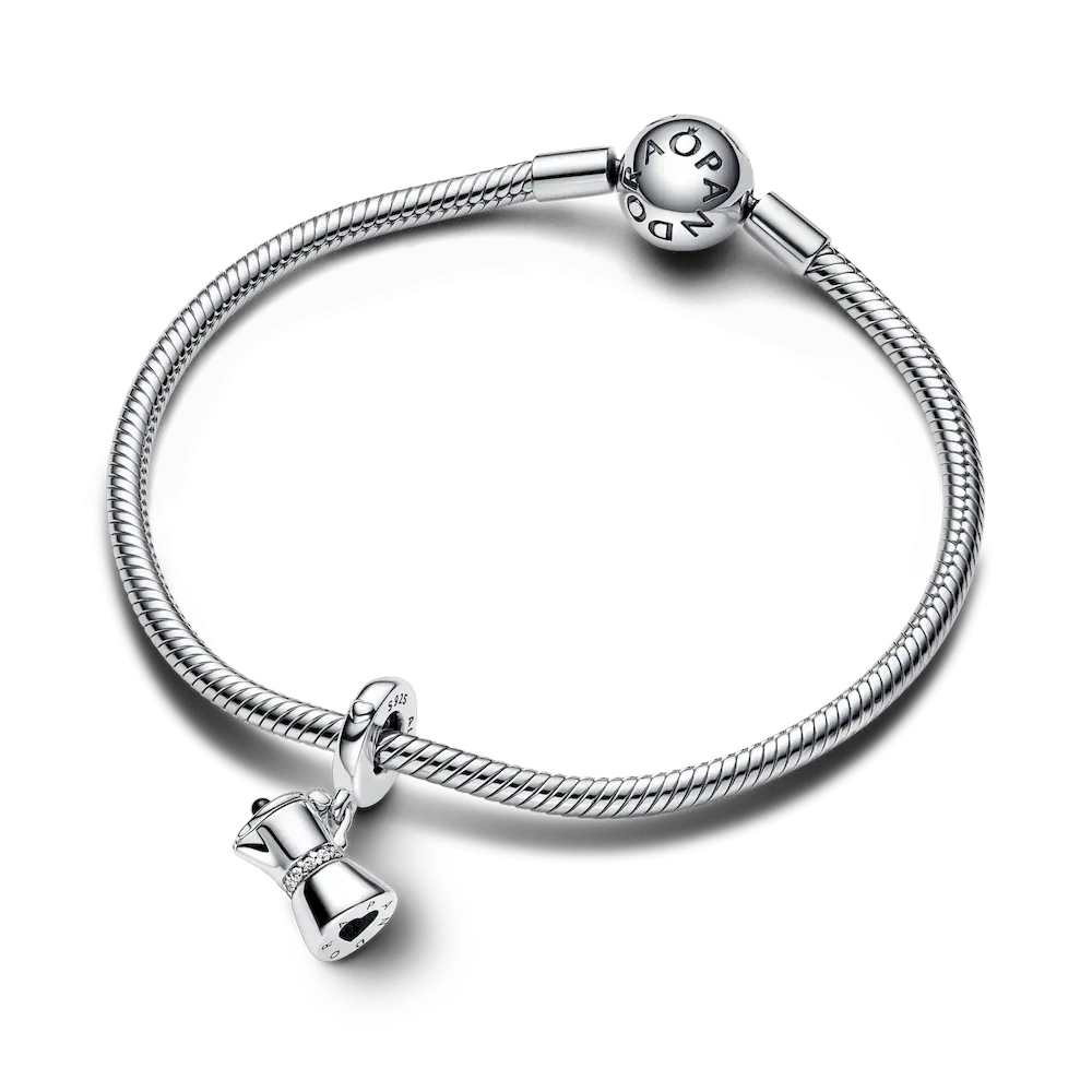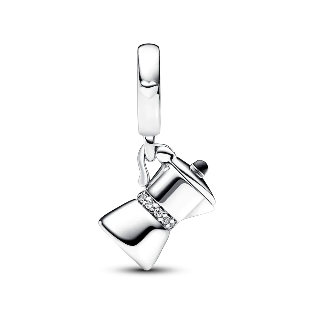 There’s nothing like the smell of coffee in the morning… or any time! Bring the flavor of Italy to your styling with the Moka Pot Dangle Charm. This distinctive coffee pot has become an iconic part of Italian coffee culture. Our moka pot charm is crafted from sterling silver and features an openable lid with enamel detail, a band of pavé around the middle and a cut-out heart on the bottom. Pairs perfectly with your favorite charm holder and your morning brew.