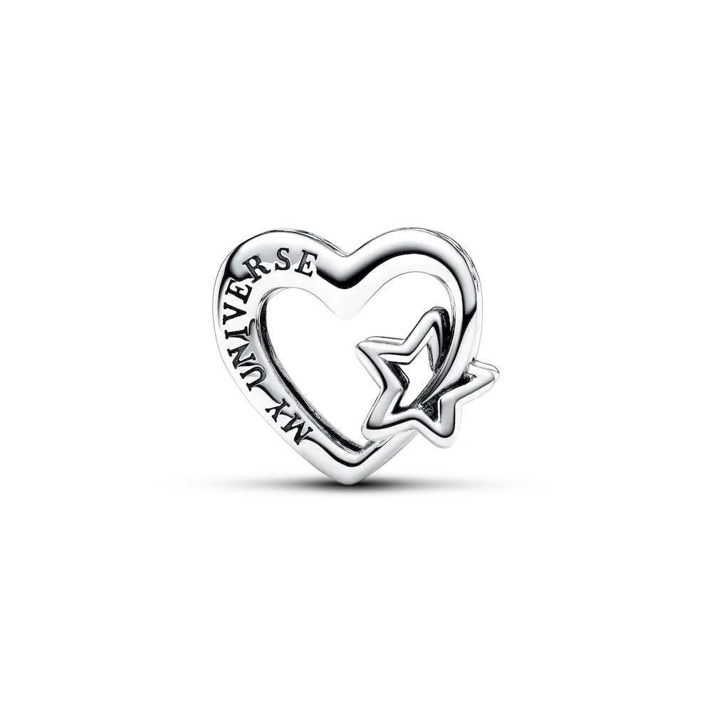 Unbox a message of love with the My Family My Universe Charm Duo. Crafted in sterling silver, this set features an openwork family heart charm with cut-out stars and hearts along the sides. Beautifully paired with our family love double dangle charm, made with sparkling cubic zirconia and stellar blue man-made crystals that twinkle like stars. Show your family that love knows no distance.