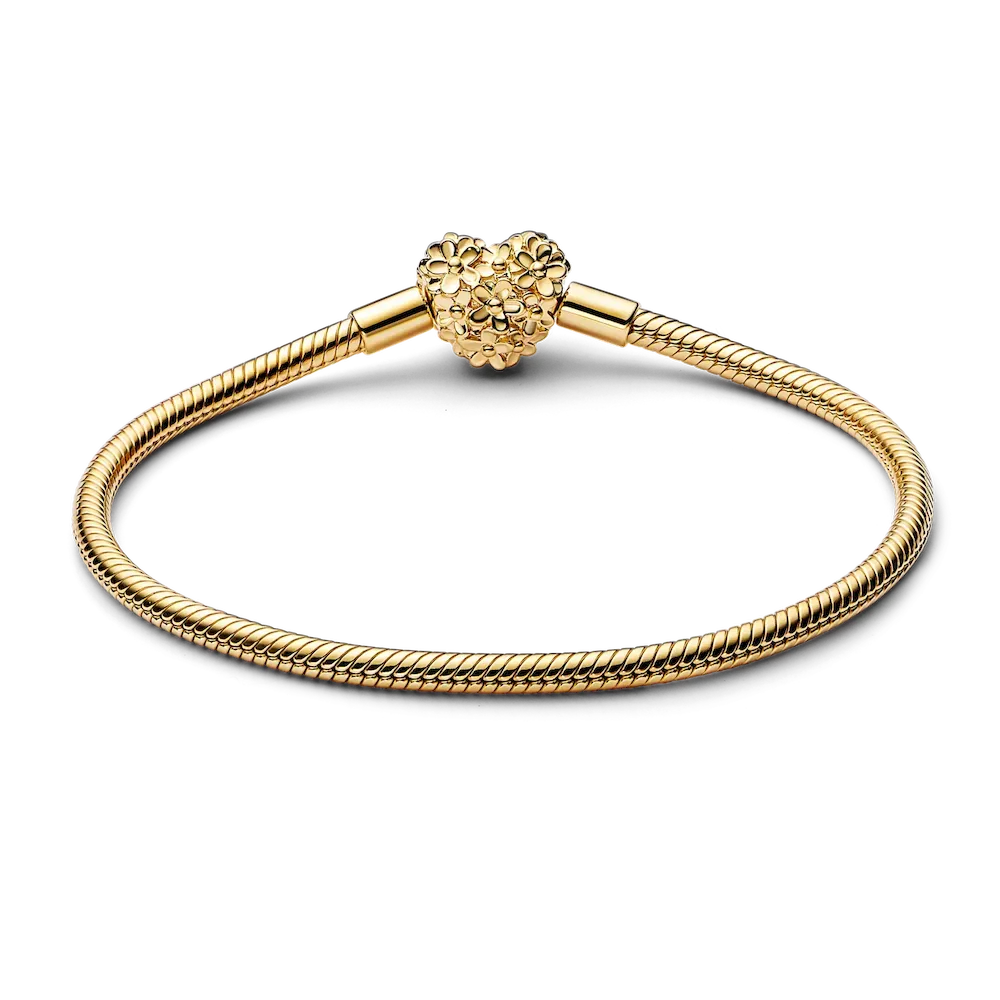 The My Pandora Two-Tone Daisy Dangle Charm Bracelet Set celebrates you with elegance. The 14k gold-plated bracelet features a heart clasp with daisies and a diamond, while the charm adds a personal, loving engraving.