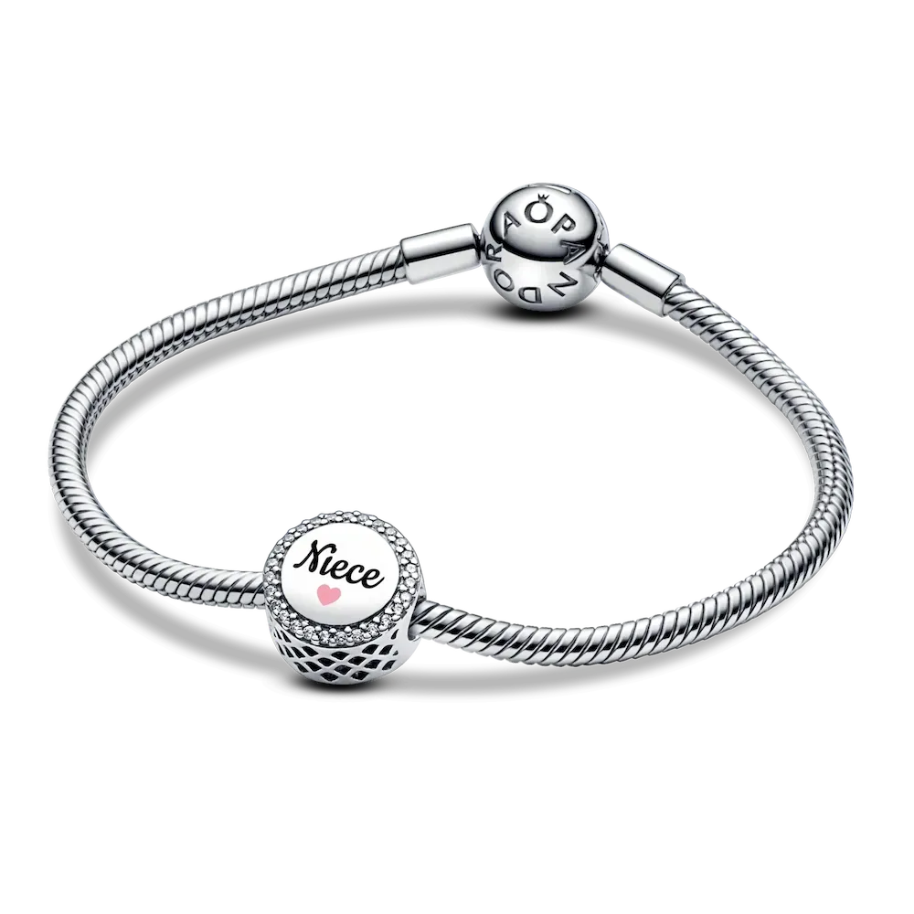 Celebrate your special connection with your niece through this dazzling Engravable Niece Charm. Featuring a sparkling row of pavé cubic zirconia, it’s engraved with