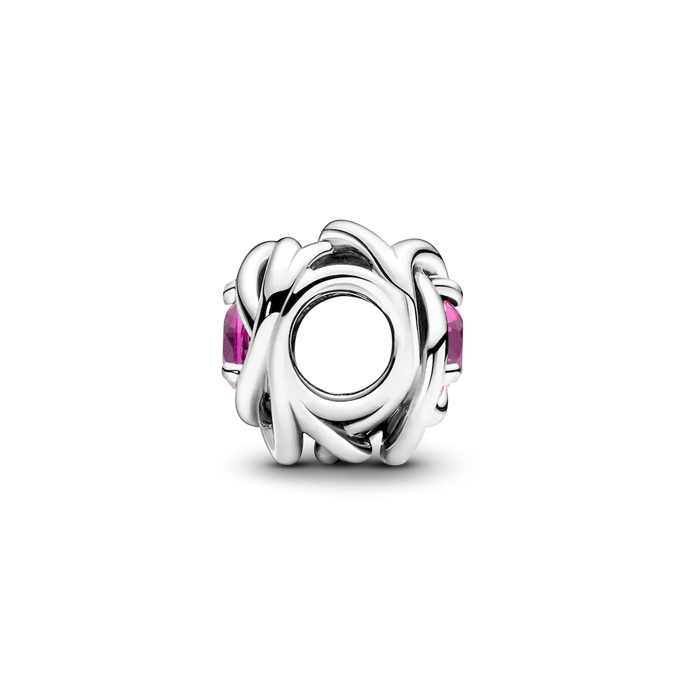 Add a pop of color to your bracelets and pendants with this Pink Eternity Circle Charm. This special piece is made in the shape of an infinity braid and is set with a magenta-colored crystal at its center. Symbolizing eternity, add this sparkling charm to your styling to give your everyday jewelry a bright update.