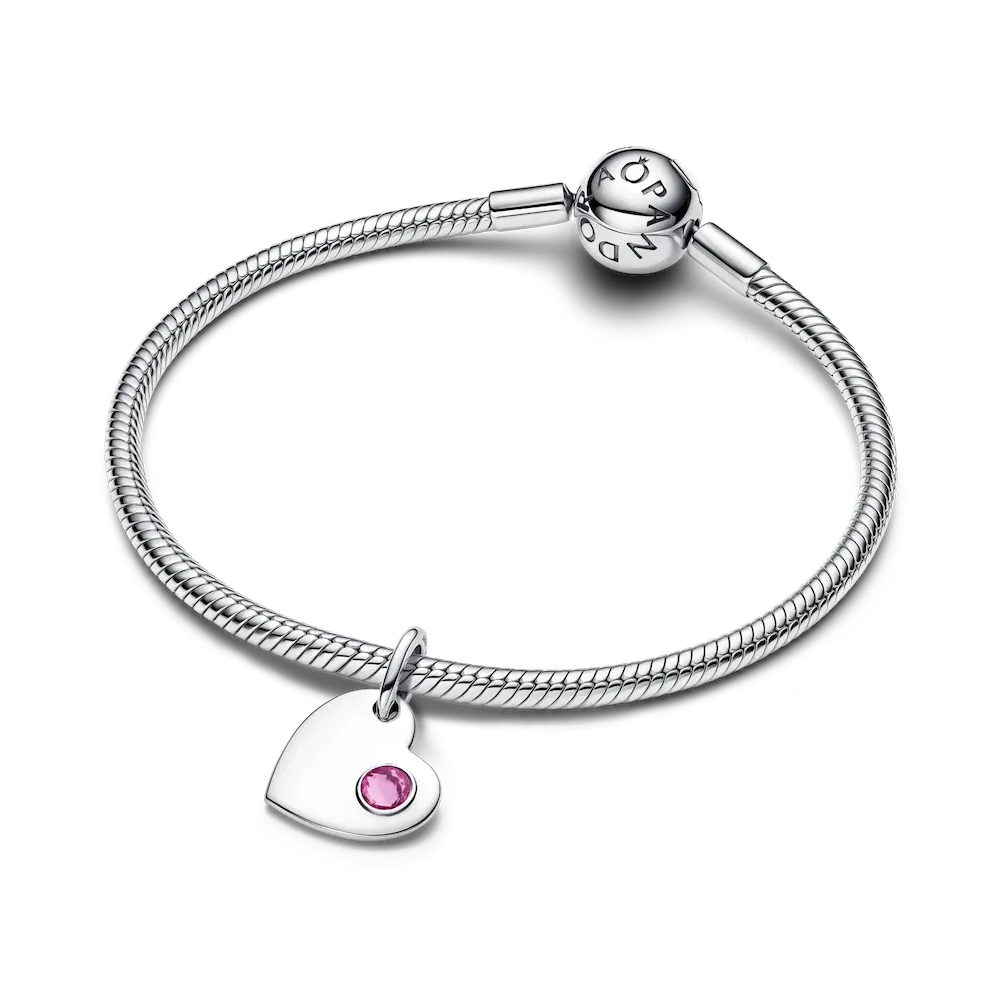Wear your heart on your sleeve, literally. This sterling silver dangle charm pairs a pink man-made crystal with a smooth back — a symbol of love and personal meaning.