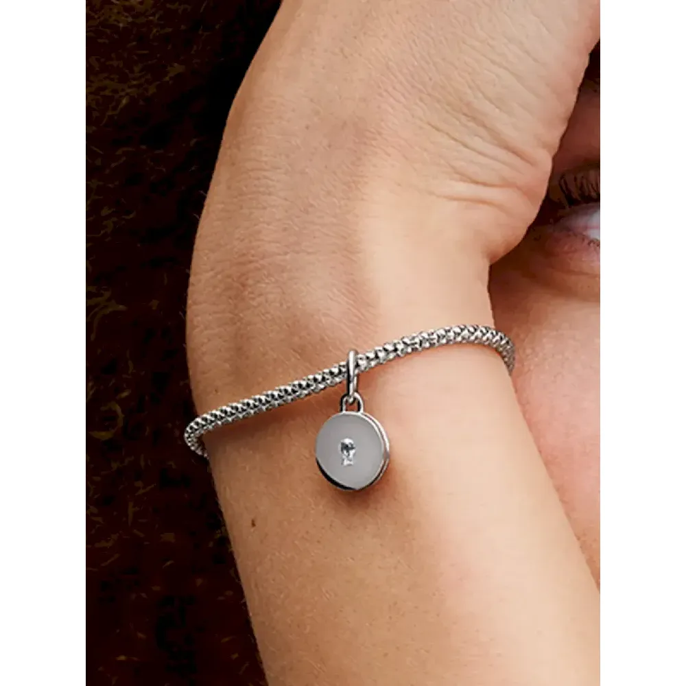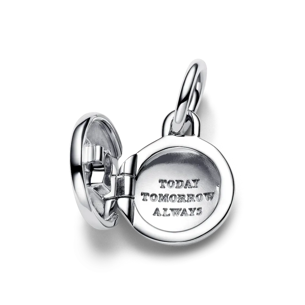 Keep what’s most dear to you close to your heart with the Openable & Engravable Love Locket Dangle Charm. This sterling silver locket charm features a clear cubic zirconia stone on the front in the shape of a keyhole, and opens and closes securely so you can keep a tiny picture, note or lock of hair inside. The inside of the locket is engraved with the message