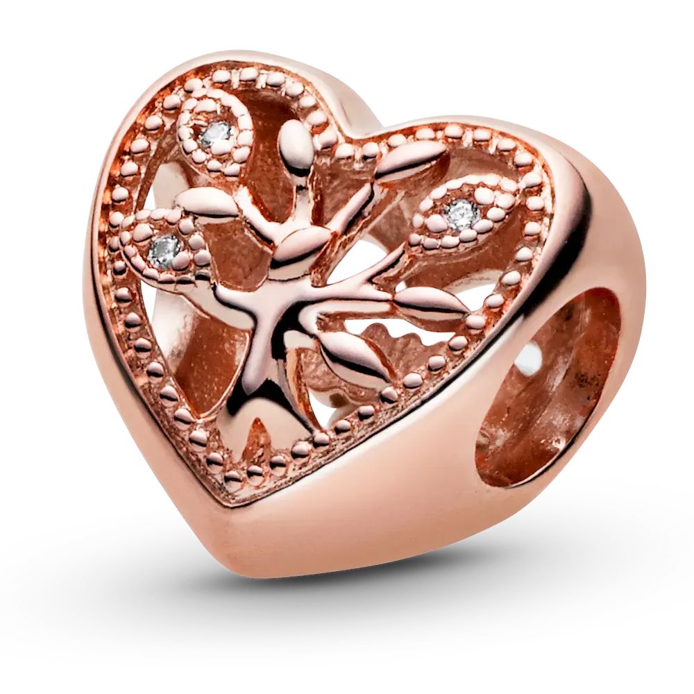 Celebrate the roots that hold us together with this Openwork Family Tree Heart Charm, a tribute to those you keep in your heart. The family tree symbol is one of the most important within Pandora jewellery, a celebration of the everlasting bonds we can wear every day. This openwork heart design in 14k gold plating features three micro bead-set round cubic zirconia, is the perfect sentimental addition to your favourite Pandora piece, with its stylish “Family” engraving found on the back.