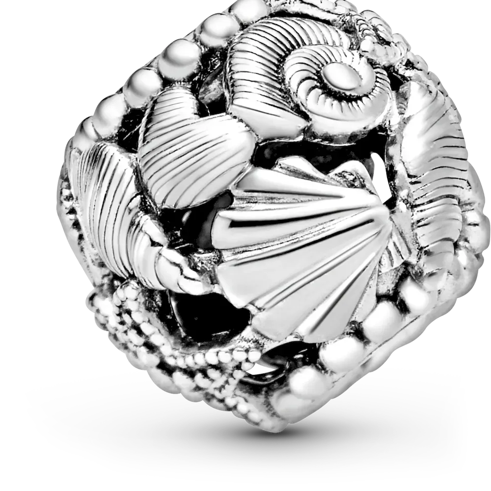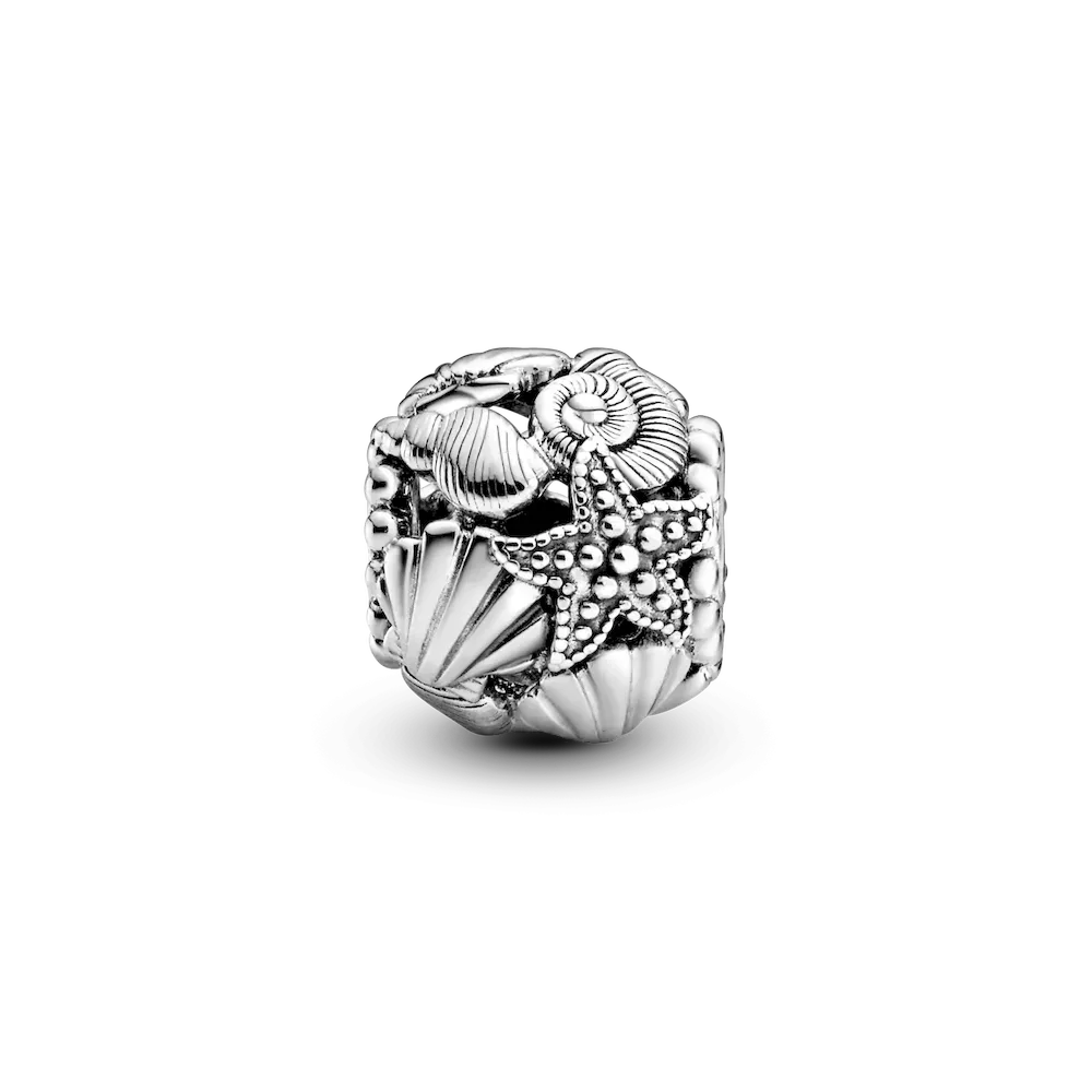 Dive into summer with this Openwork Starfish, Shells & Hearts Charm, inspired by the treasures hidden underneath the ocean’s surface. The sterling silver openwork design is decorated with different types of seashells, starfish and heart details with chiseled and beaded textures, which create an intricate and eye-catching finish. Wear it to show your love for everything the ocean has to offer or simply as a way to add a little sparkle to a summer outfit.