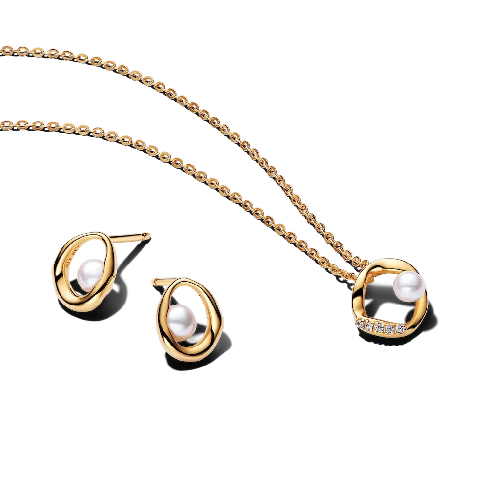 This 14k gold-plated necklace and earring set features soft curves and luminous treated freshwater cultured pearls. Accented with pavé, it’s a gift for someone whose beauty shines from within.