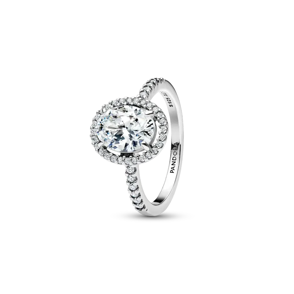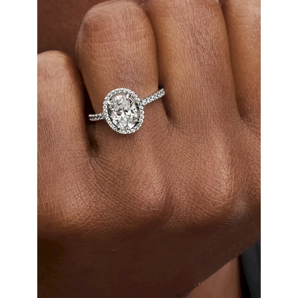 Oval Sparkling Halo Statement Ring