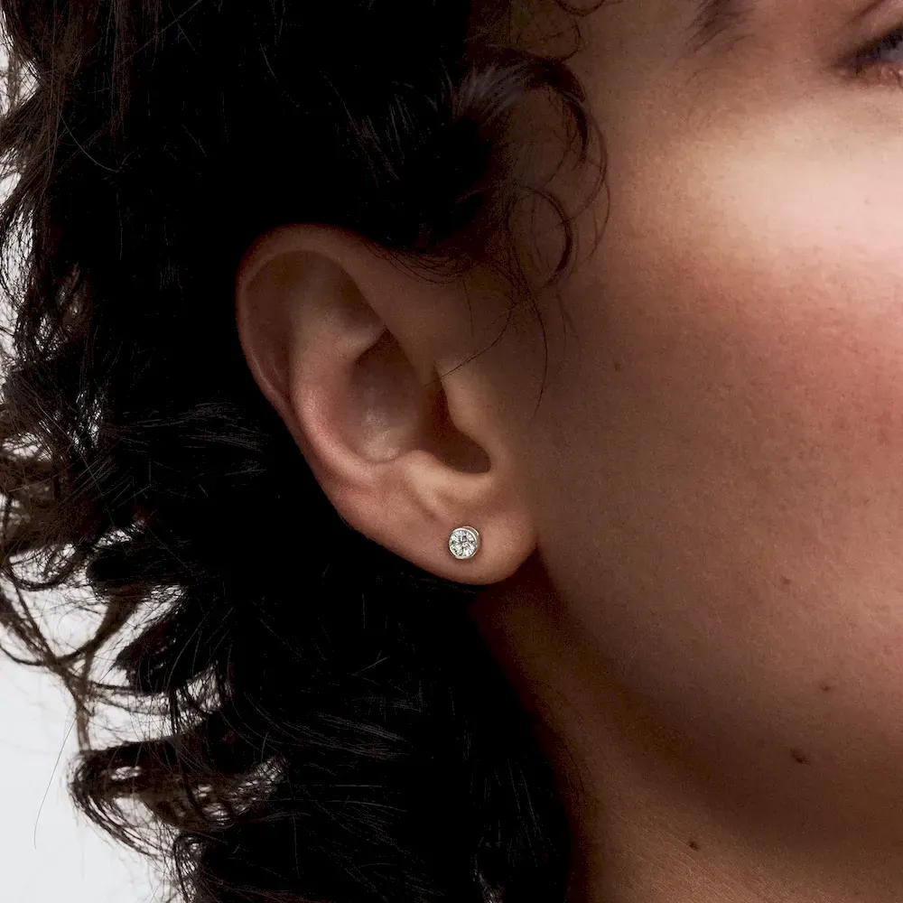 Meet your new essential lab-grown diamond earrings. The Pandora Era Bezel Sterling Silver Lab-grown Diamond Earrings are sold as a pair and feature a 0.15 carat lab-grown diamond in each earring, with a total carat weight of 0.30. Each stone is framed by a sterling silver bezel setting with a sleek, contemporary aesthetic. Cut-outs on the sides of the bezel setting let in the light for ultimate sparkle. A classic that brilliantly rises above time, these lab-grown diamond earrings are the perfect elevated staple. Wear them alone for a minimalist styling or add subtle sparkle to your earring stack. Each Pandora Lab-grown diamond is treated with a post-growth color enhancement called annealing.