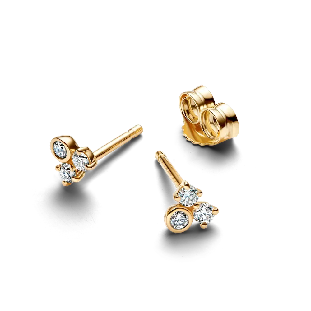 Crafted from 14k gold, these earrings feature a cluster of three lab-grown diamonds with a combined total carat weight of 0.19ct. Two diamonds are prong-set while one is bezel-set, creating a harmonious interplay of settings. Add a touch of radiance to your everyday jewelry with a classic yet contemporary diamond stud.
