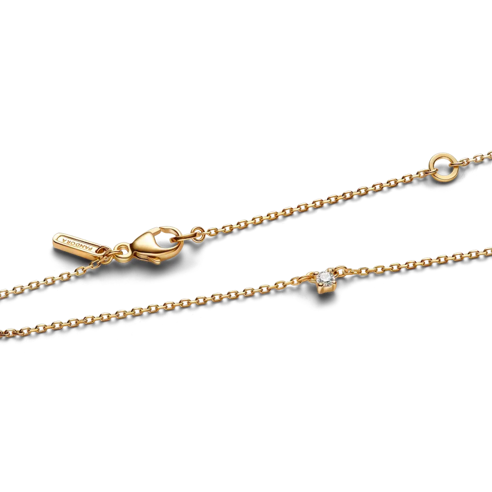 Elevate your everyday with the Pandora Era Lab-Grown Diamond Pendant Necklace. Crafted in solid 14k gold, it features a single round prong-set lab-grown diamond. Perfect for layering with other pieces, this delicate design embodies classic elegance, making it a versatile addition to your jewelry collection.