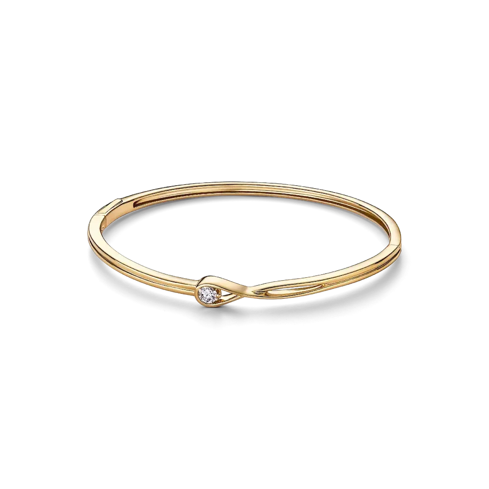 Celebrate your power to shine with this 14k gold bangle, hand-set with a radiant 0.25 carat lab-grown diamond. The round brilliant excellent cut lab-grown diamond floats inside our unique infinity motif, which flows around the stone as if it’s ethereally suspended in mid-air. Our closed bangle design features a slender profile and functional hinge and clasp mechanisms, promising security and comfort. We recommend handling it with extra care to ensure optimal functionality and longevity. Let yours shine alone or inspire an elevated everyday stack. Each Pandora Lab-grown diamond is treated with a post-growth color enhancement called annealing.