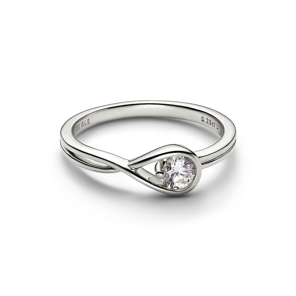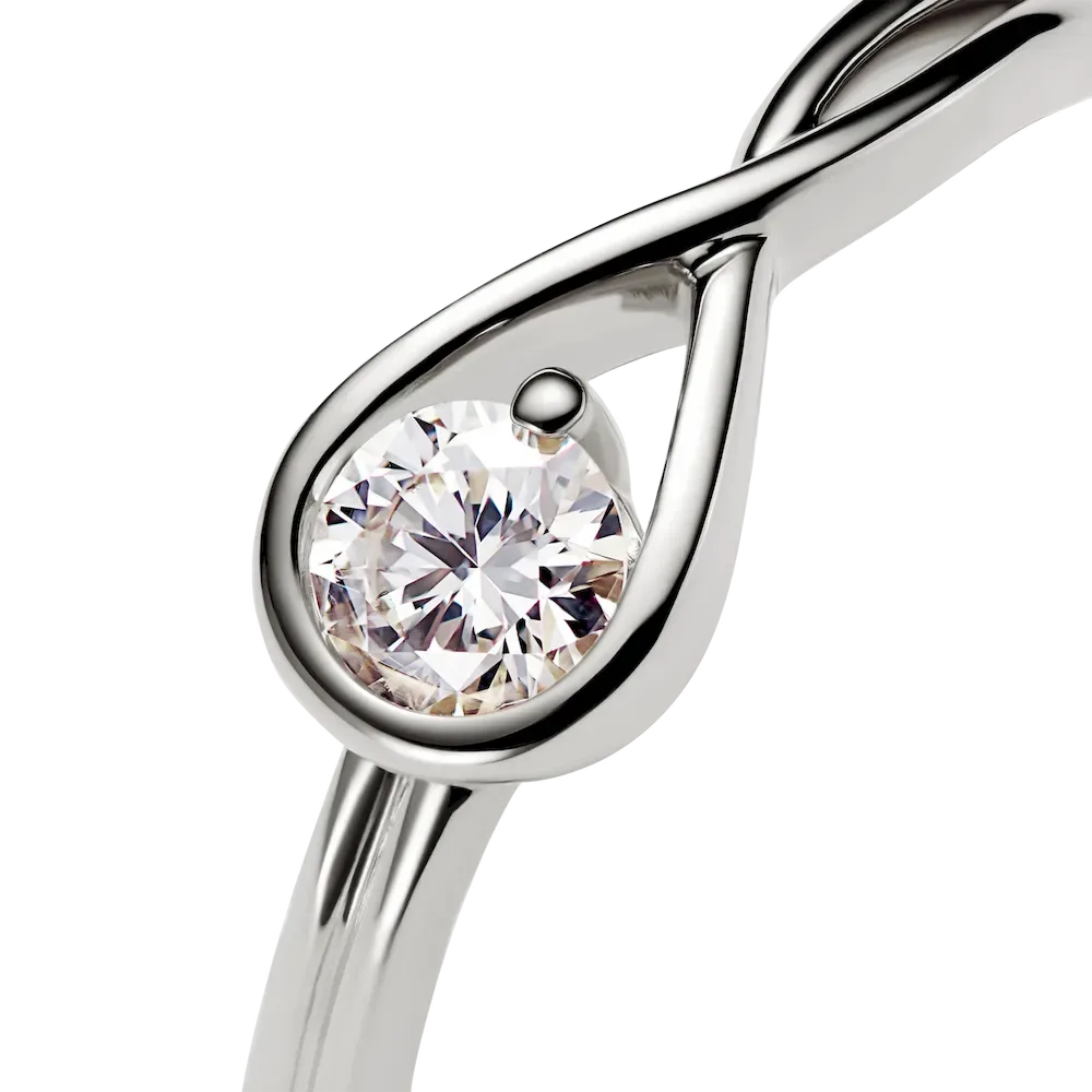 A solid 14k white gold ring hand set with a 0.25 carat lab-grown diamond. A beautiful statement of empowerment and possibility, or a simple yet eloquent declaration of love. This ring features a scintillating round brilliant excellent cut lab-grown diamond in a modern infinity setting that flows seamlessly around the stone. It can be worn alone or stacked with other rings from the Pandora Infinite collection. Each Pandora Lab-grown diamond is treated with a post-growth color enhancement called annealing.