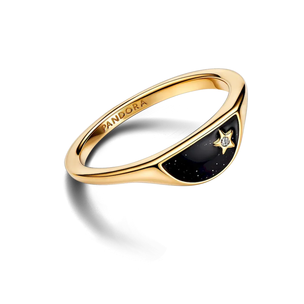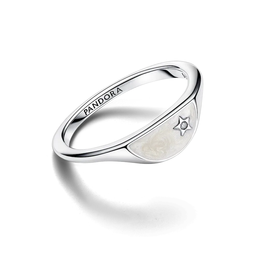 Inspired by the symbolism of Tao, the East Asian philosophy of life, these halved enamel rings represent the harmonious balance between opposing forces, such as light and dark, and the power of opposites coming together to form a whole. Glittery black enamel, like the night sky, is punctuated by a cubic zirconia star. Shimmering white enamel complements the cool tones of sterling silver. Together, they form one complete element, flowing into one another in a continuous cycle of change and transformation. Interconnected and interdependent, wear together or share one half with the one that completes you.