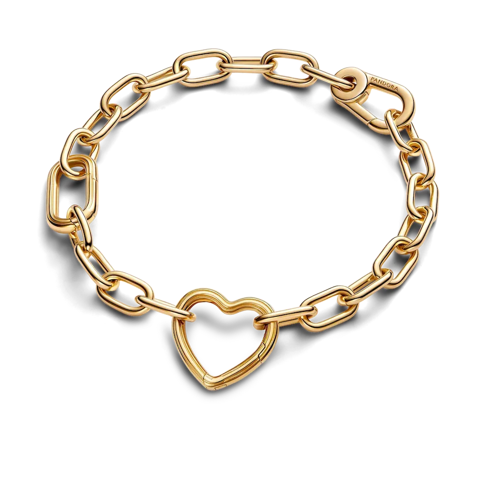 Love yourself and your look when you wear the Pandora ME Heart Openable Link. This heart-shaped openable 14k gold-plated band has grooved lines and is designed to be worn on bracelets, necklaces and earrings. Versatile enough to go with any vibe or mood, you can style this link with your favourite mini dangle charms and medallion charms to create your own mixed-metal playlist and curate a look that’s 100 percent you.