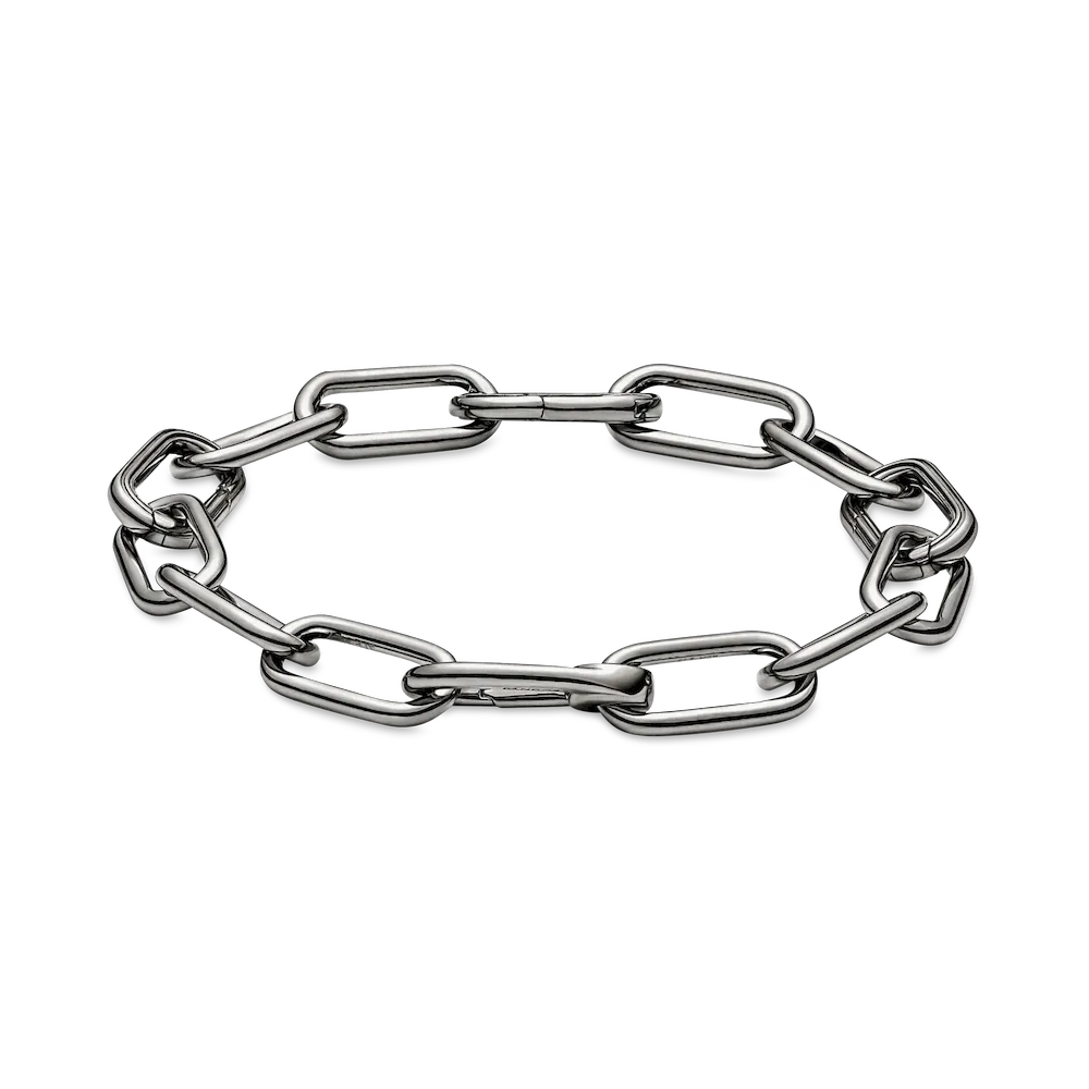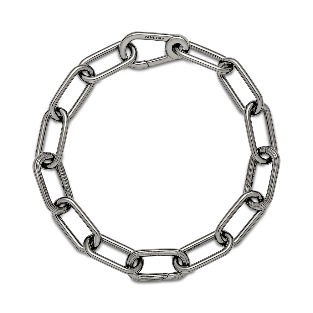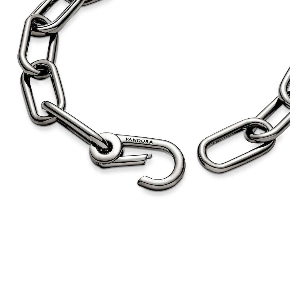 Wear your mantra on your wrist. Our ruthenium-plated Pandora ME Medium-Link Chain Bracelet holds endless styling possibilities. The bracelet features three openable links, designed with a grooved surface to set them apart, styling links and a carabiner clasp closure. First customise your link chain: one set of interlocking styling links can be swapped out between each link for four small interlocking links, a styling double link or one styling link – keep the original length or adjust it to suit you. Once you’ve curated your link chains, remix your look with up to two meaningful medallion charms or up to eight mini dangle charms on each openable link, or with one medallion charm per styling link to show the world what you’re about. Please note this item is only compatible with Pandora ME jewelry and will not fit our other collections.